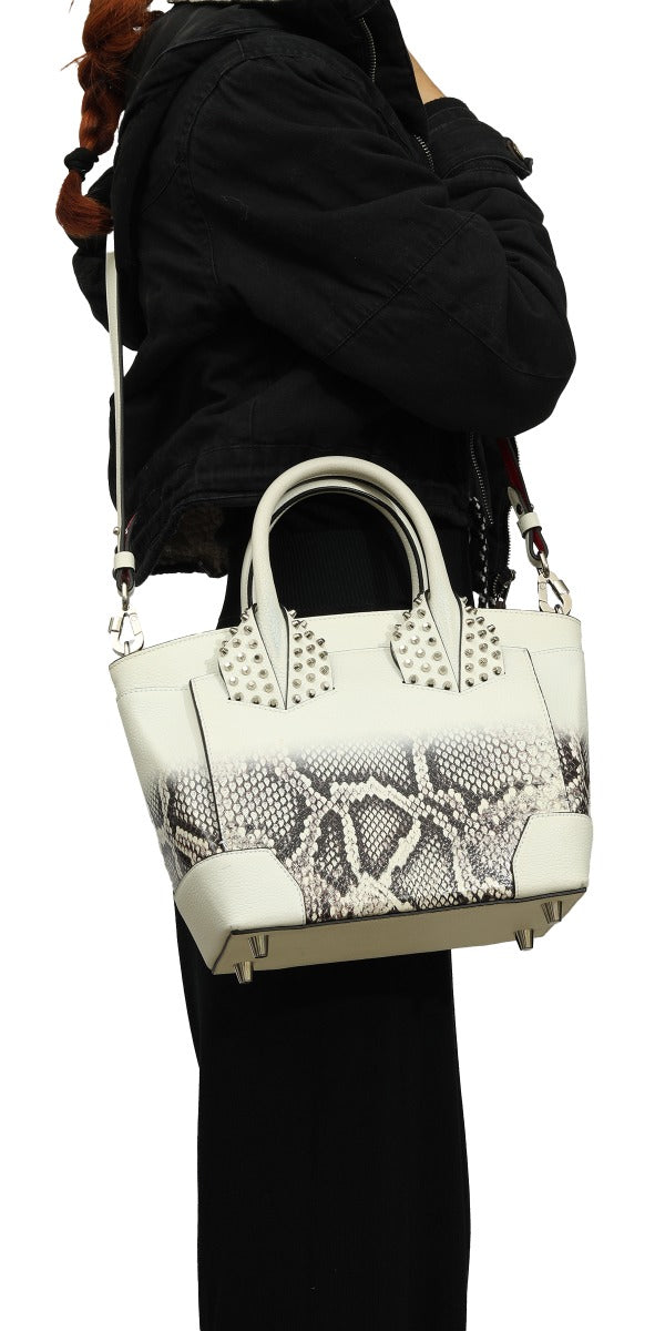Christian Louboutin White Snakeskin Effect Leather Eloise Satchel comes in this Stunning WHITE color. It falls under our pristine Condition Category. No visible wear and tear or fading can be seen.