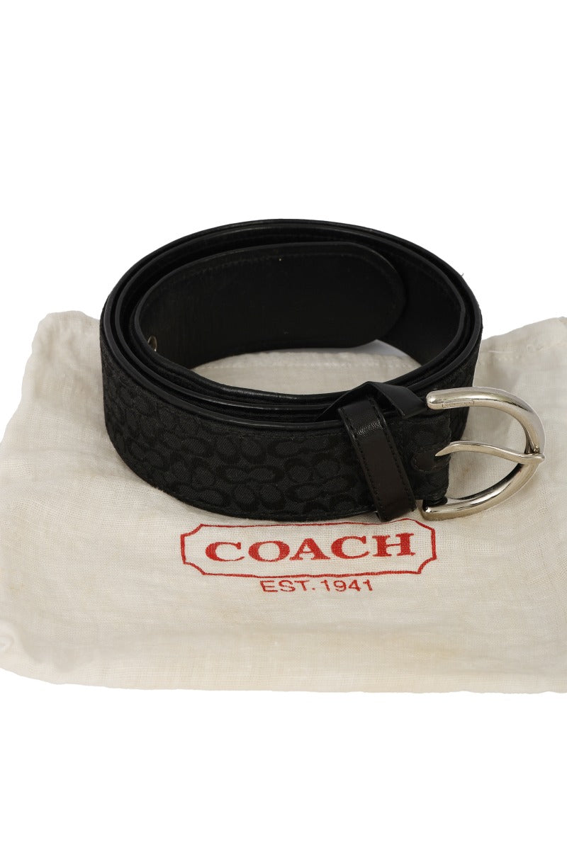 COACH 85 CM / 34 INCHES BLACK MONOGRAM BELT Comes in this stunning Black color. It falls under our Pristine Condition Category. No visible wear and tear or fading can be seen.