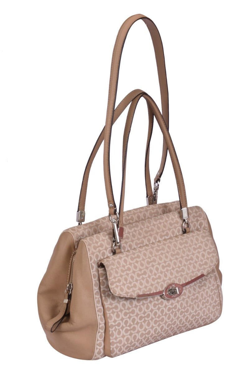 Coach Beige Monogram Shoulder Bag comes in this Stunning Beige color .It falls under our Like New Condition Category. No visible wear and tear or fading can be seen.