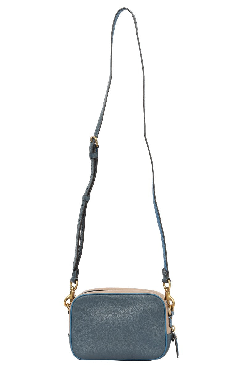 Coach Light Blue Leather Camera Cross Body Bag comes in this Stunning BLUE color. It falls under our LIKE NEW Condition Category. No visible wear and tear or fading can be seen.