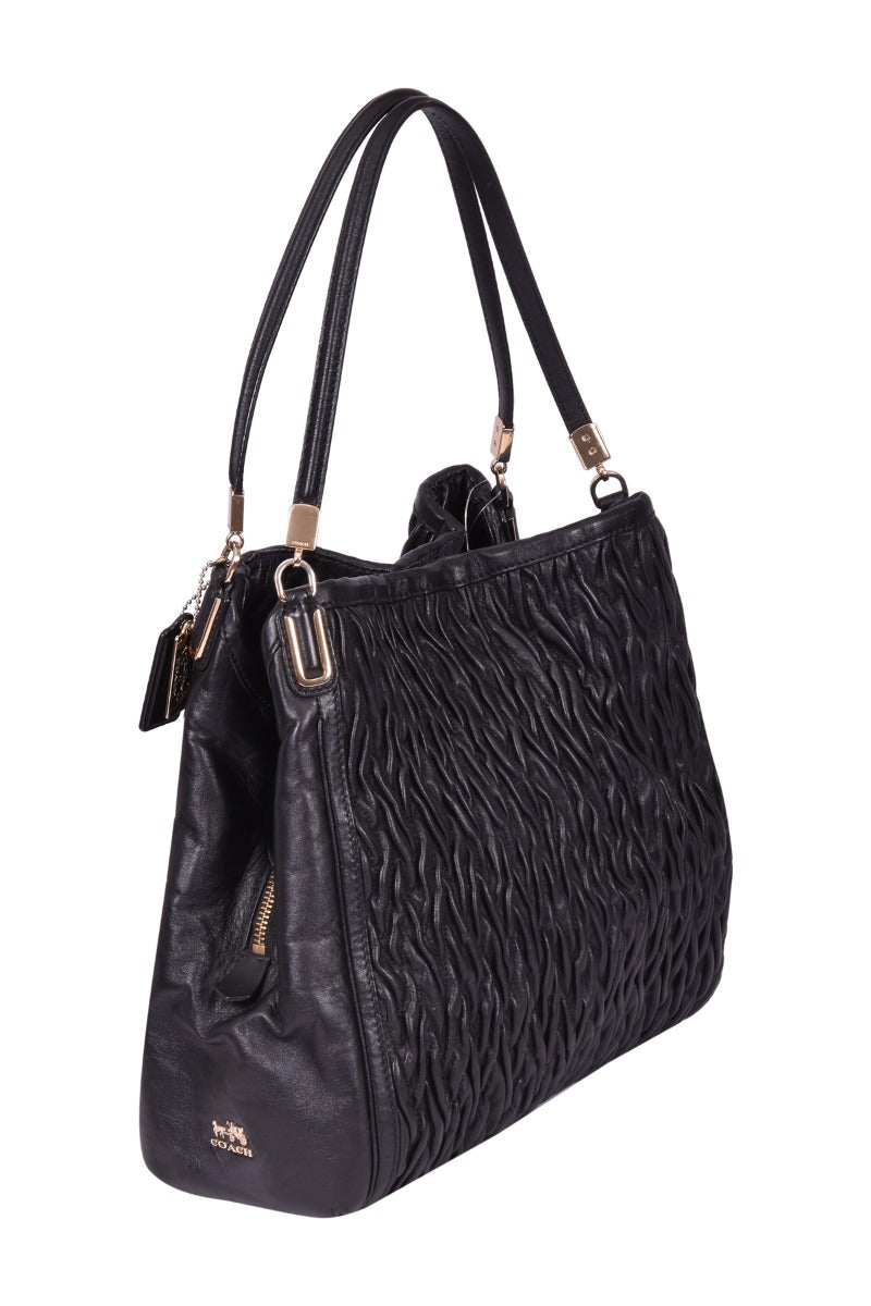 Coach Madison Gathered Twist Phoebe Hobo Bag comes in this Stunning Black color .It falls under our Good Condition Category. No visible wear and tear or fading can be seen.