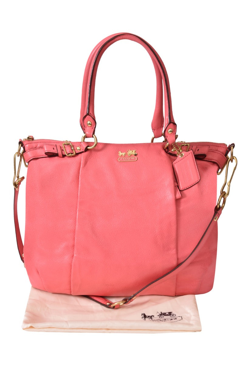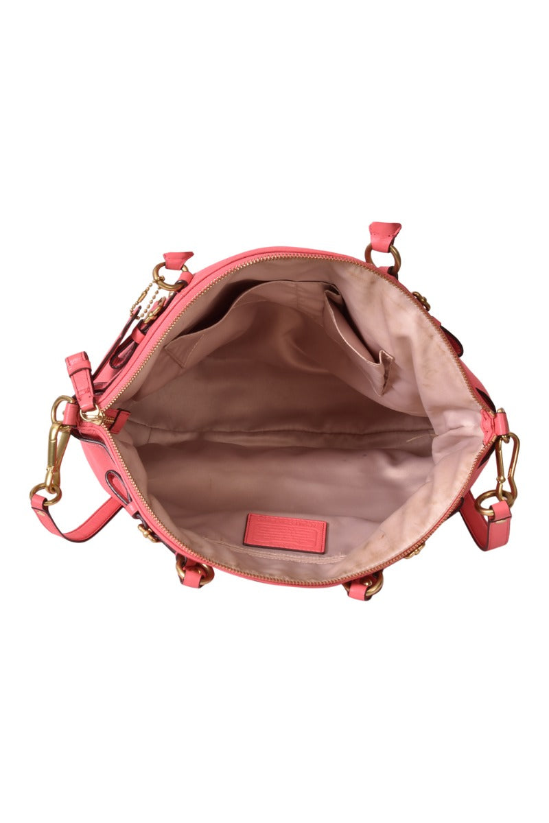 Coach Madison Lindsey Tote Bag comes in this Stunning Peach color .It falls under our Like New Condition Category. No visible wear and tear or fading can be seen.