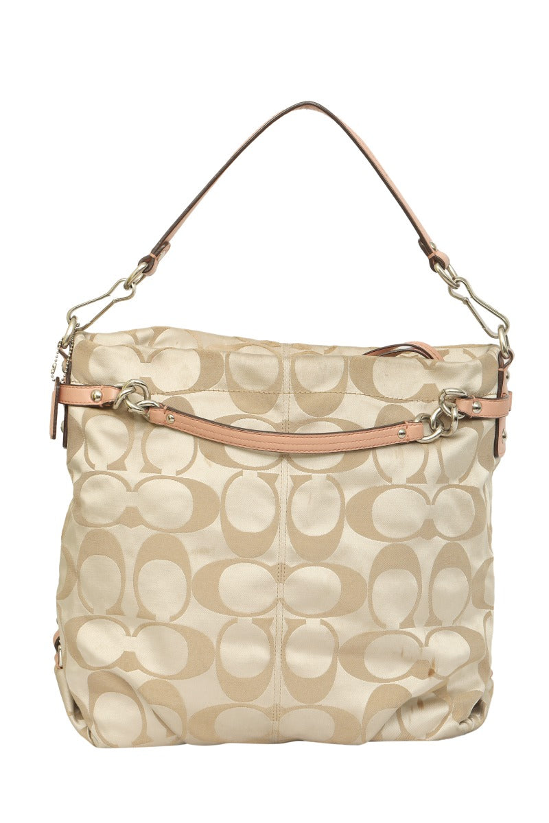 Coach Monogram Canvas Shoulder Bag comes in this Stunning Beige color .It falls under our Pristine Condition Category. No visible wear and tear or fading can be seen