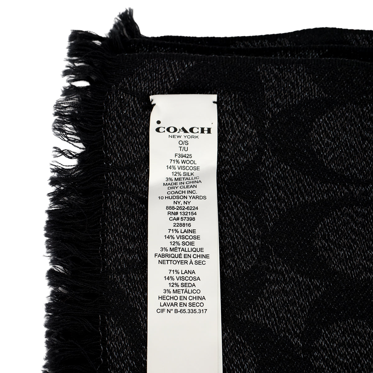 Coach Monogram Shimmer Stole comes in this stunning black colour. It falls under our never been used condition category. No visible wear and tear or fading can be seen.