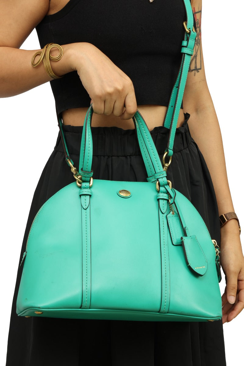 COACH PEYTON CORA DOMED SATCHEL BAGcomes in this Stunning Tealcolor .It falls under our Like New Condition Category. No visible wear and tear or fading can be seen.