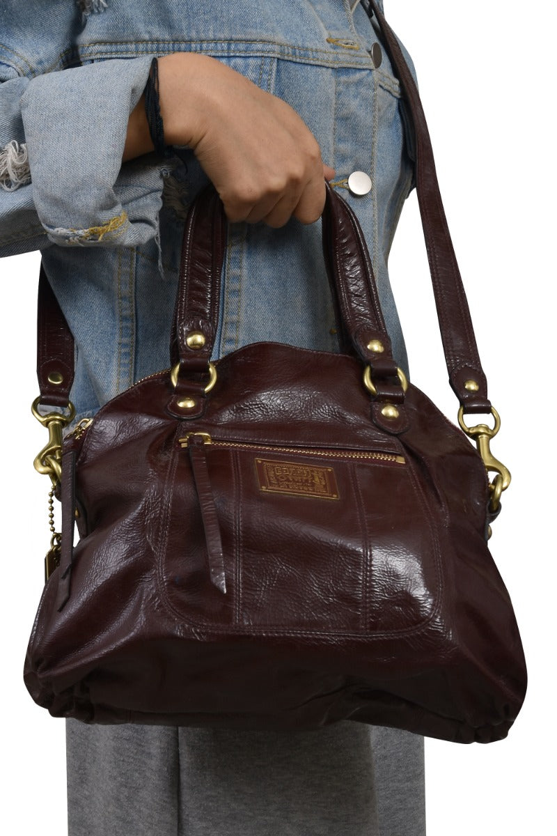 Coach Red Poppy Satchel Handbag comes in this Stunning Burgundycolor .It falls under our Pristine Condition Category. No visible wear and tear or fading can be seen.