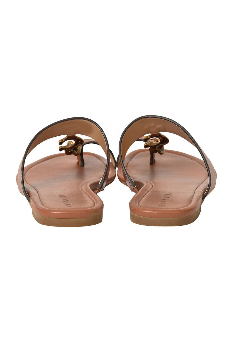 Coach Saddle Jaimee Toe Ring Sandals comes in this stunning Brown color. It falls under our Pristine Condition Category. No visible wear and tear or fading can be seen.