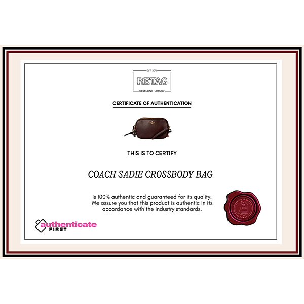 COACH SADIE CROSSBODY BAG comes in this stunning Wine color. It falls under our Pristine Condition category. No visible wear & tear can be seen.