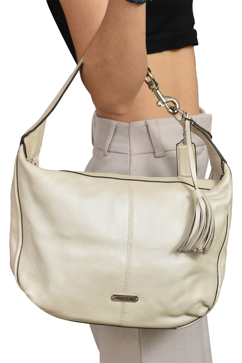 Coach Signature Off-White Shoulder Bagcomes in this Stunning Off White color .It falls under our Pristine Condition Category. No visible wear and tear or fading can be seen