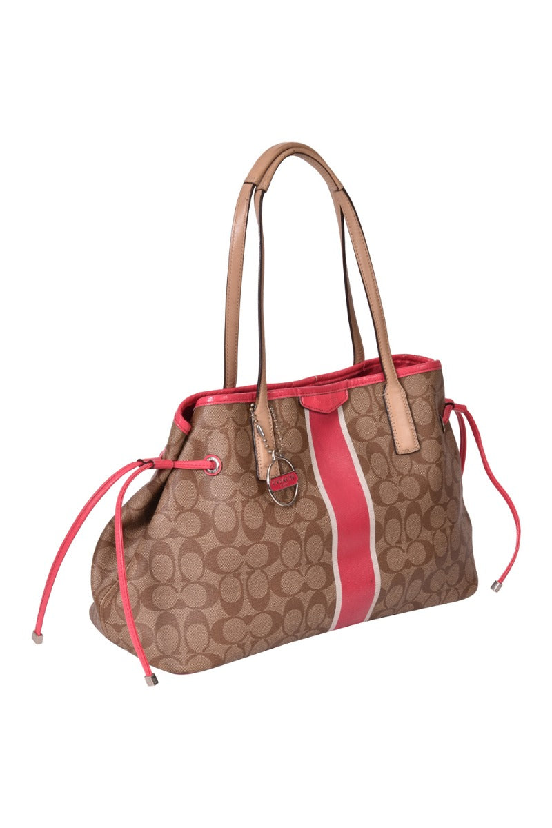 Coach Signature Stripe Drawstring Carryall Bag comes in this Stunning Brown color .It falls under our Gently Used Condition Category.