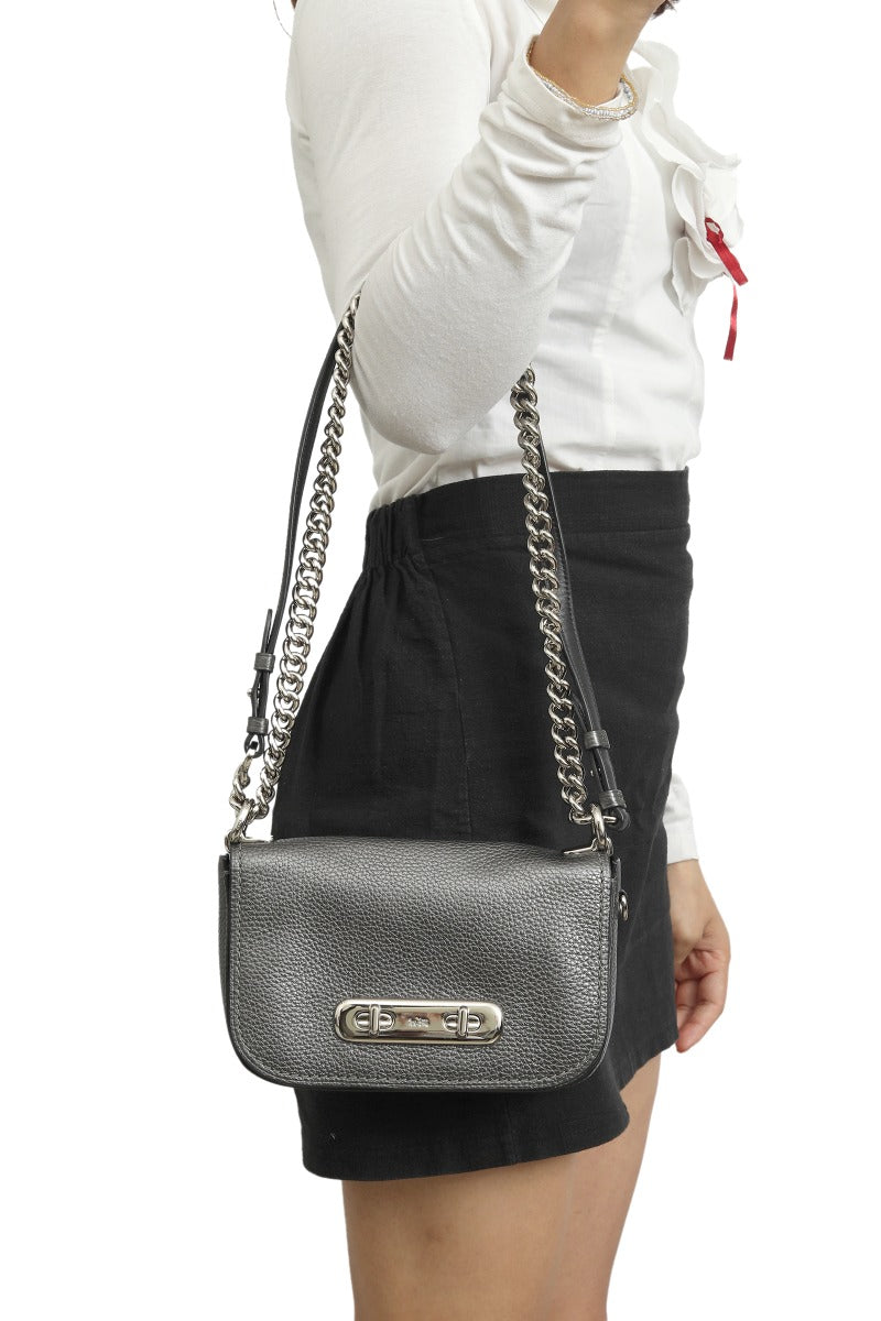 Coach Swagger Glitter Gray Leather Shoulder Bagcomes in this Stunning Gray color .It falls under our pristine Condition Category. No visible wear and tear or fading can be seen
