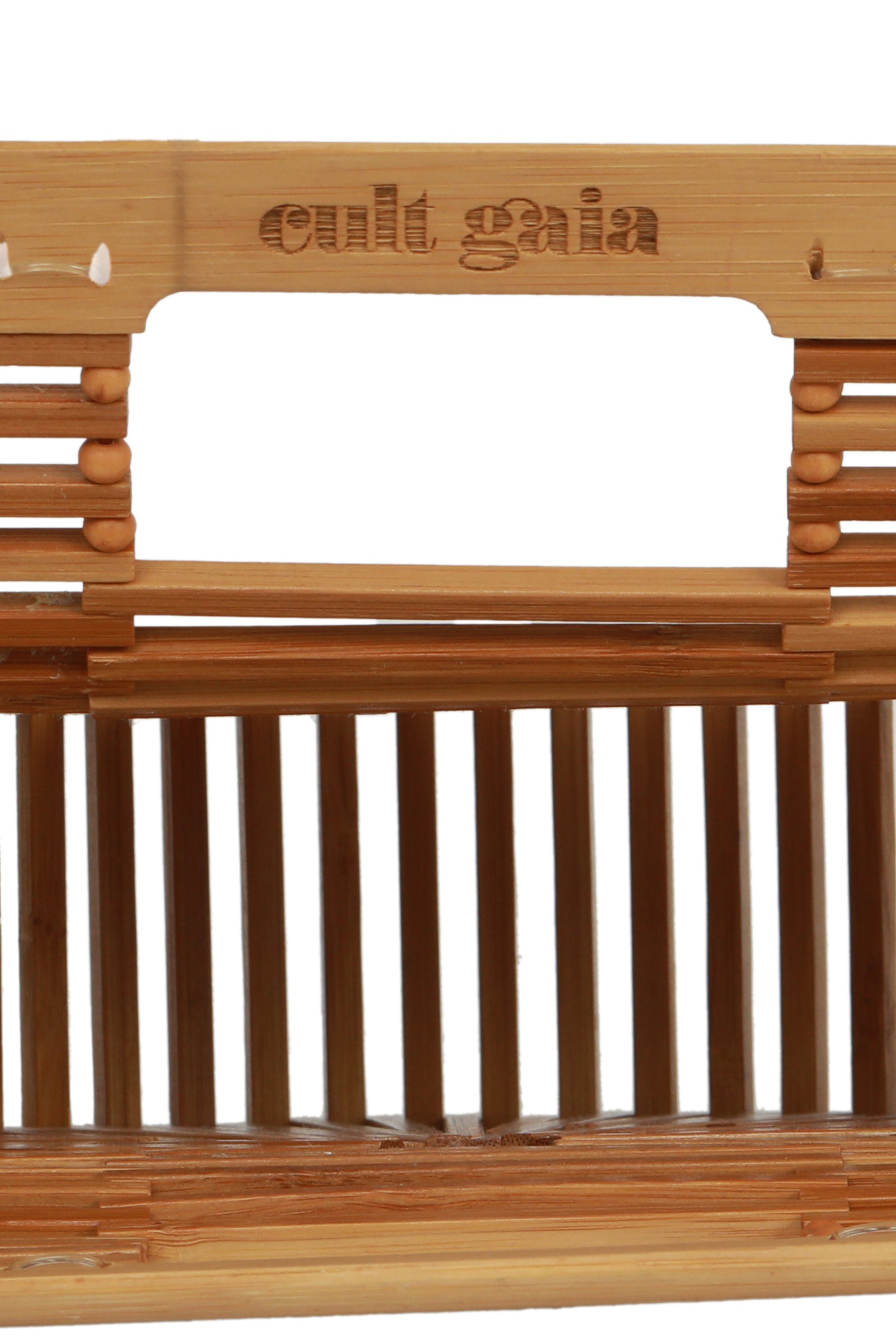 Cult Gaia Bamboo Ark Top Handle Bag comes in this Stunning Browncolor .It falls under our NEW WITHOUT TAG Condition Category. No visible wear and tear or fading can be seen