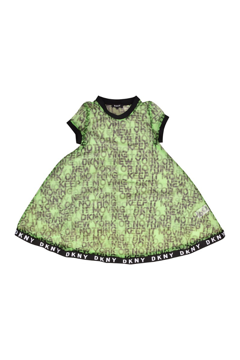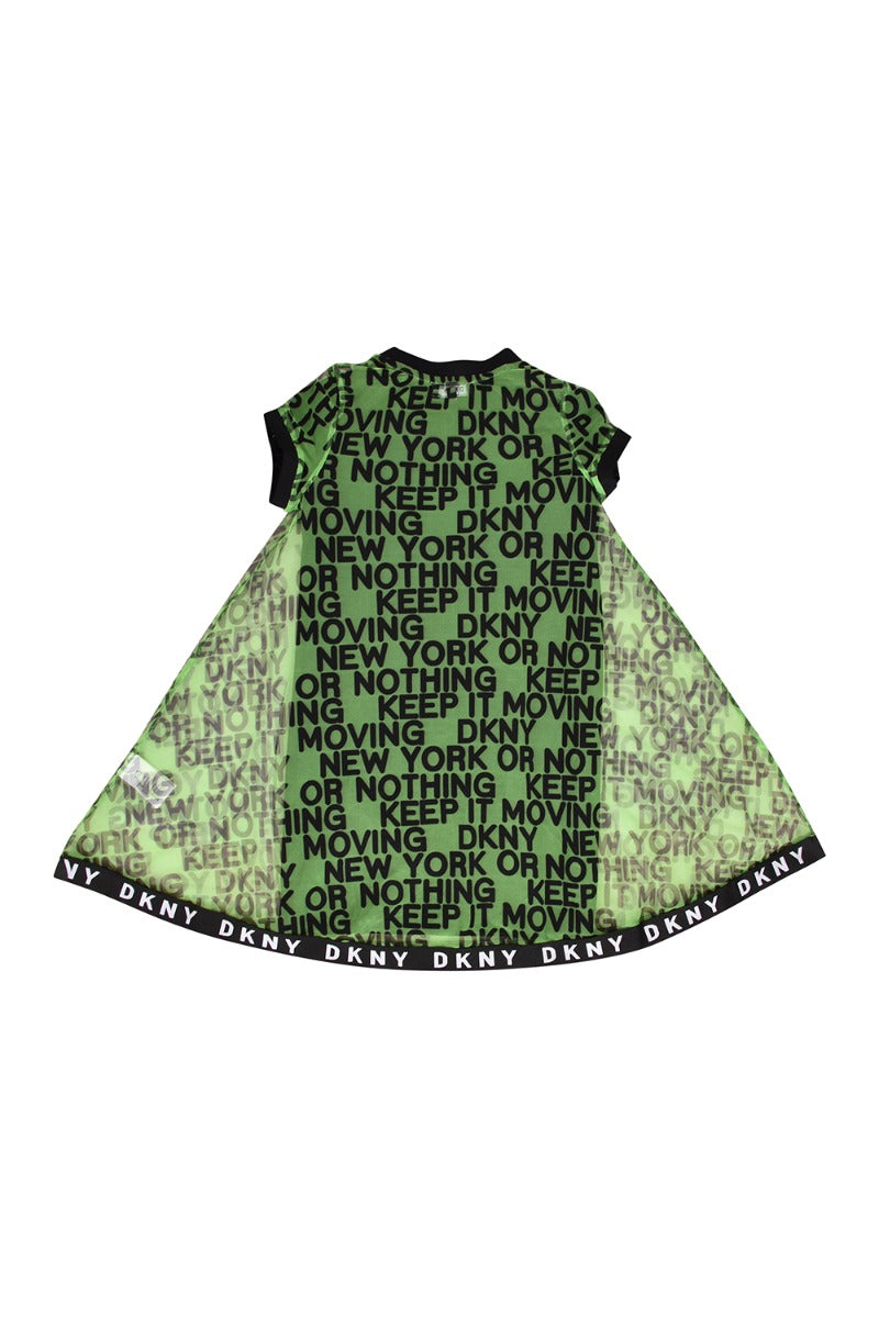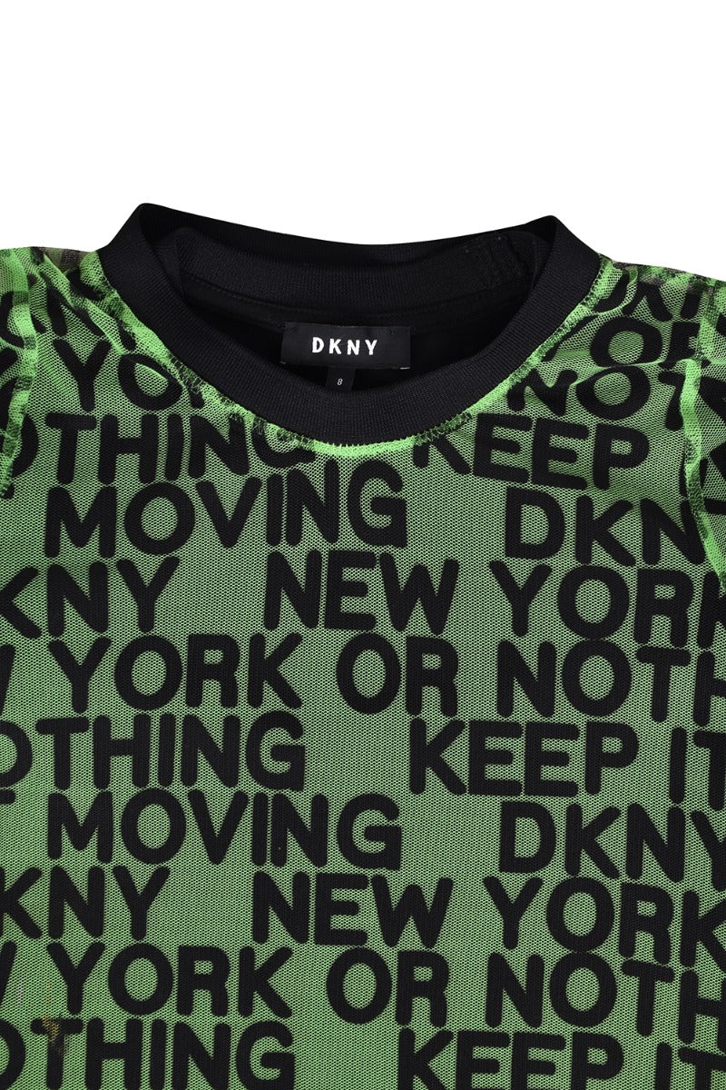 DKNY Kid's Mesh & Milano Slogan Dressescomes in this Stunning Green color. It falls under our Never Been Used Condition Category. No visible wear and tear or fading can be seen.