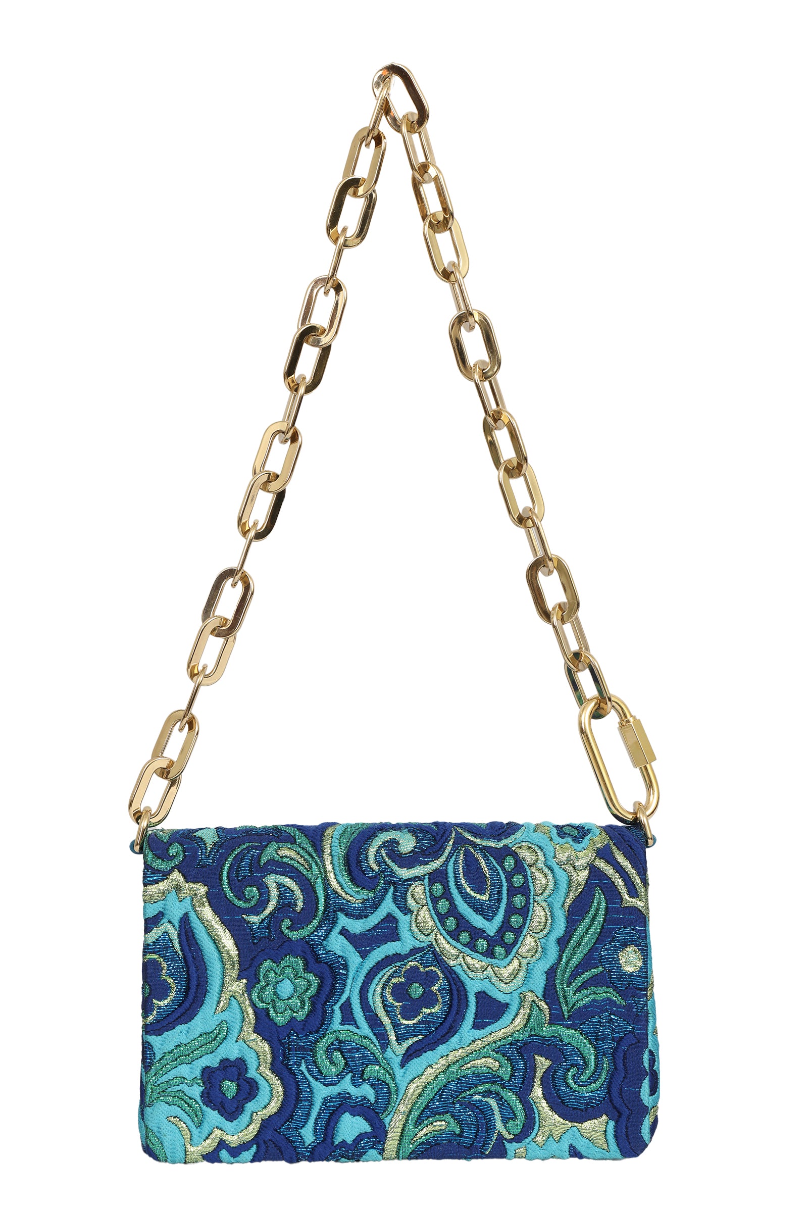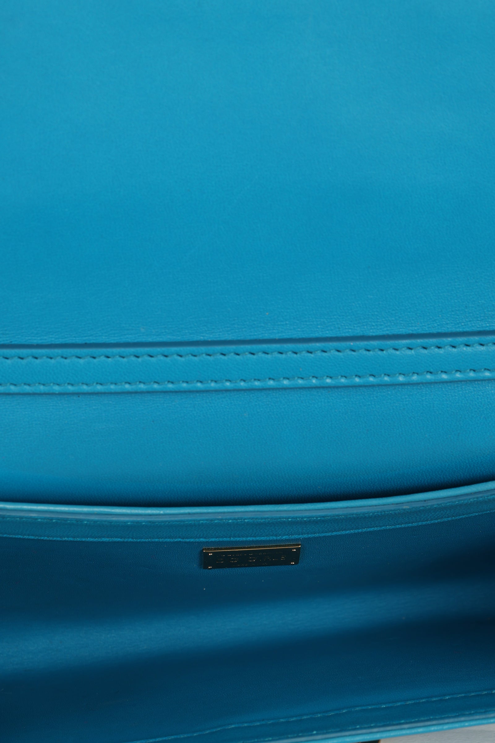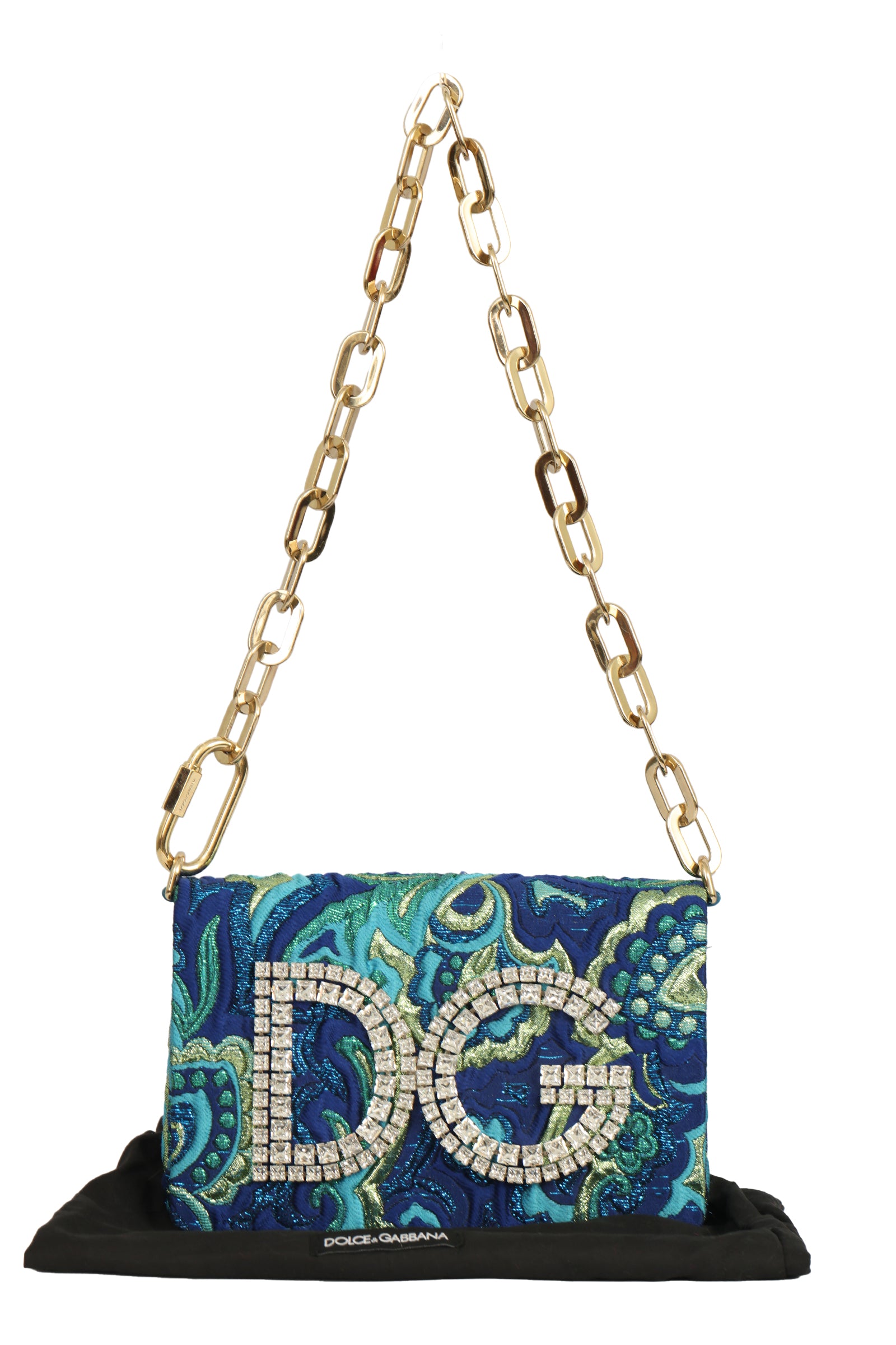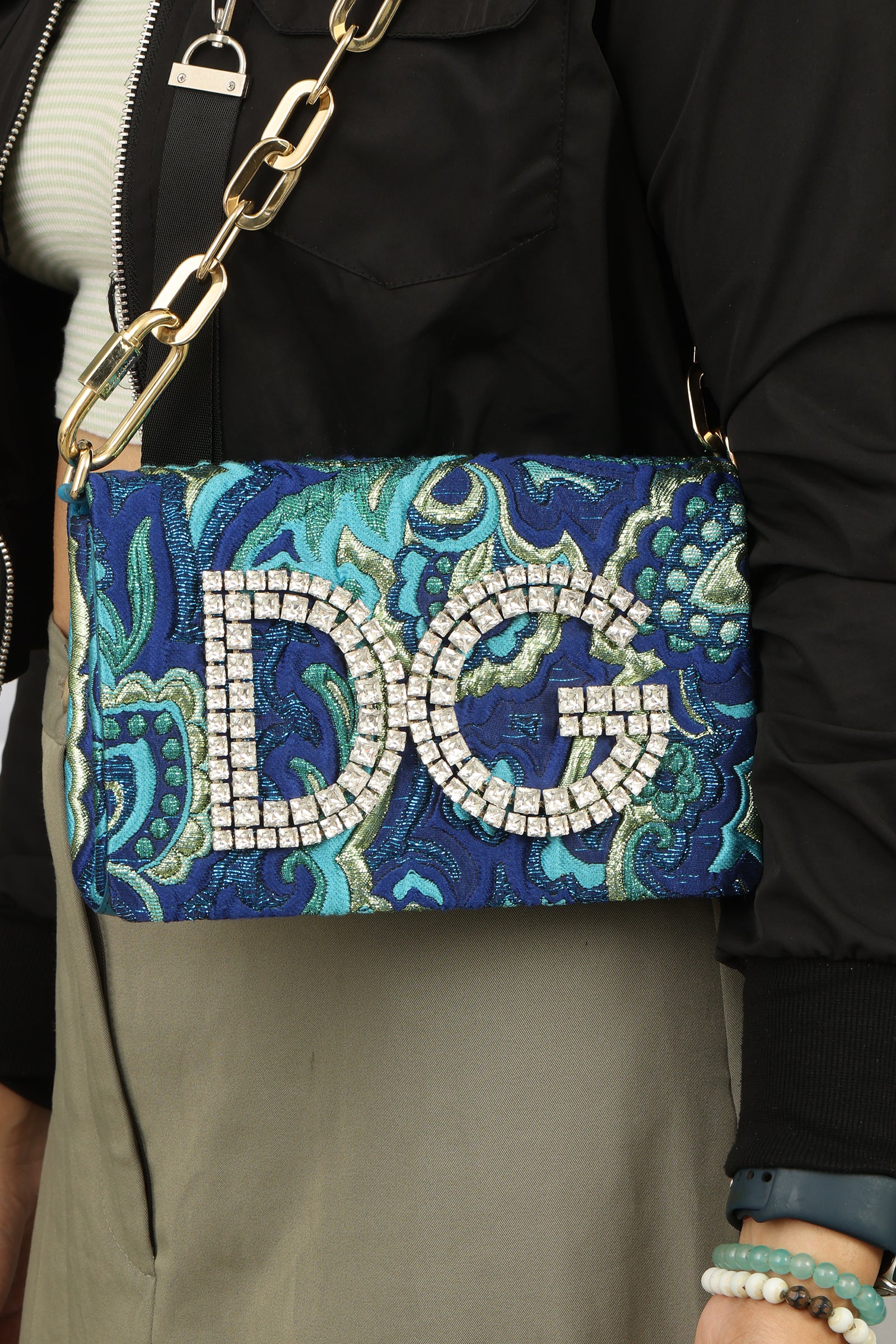 The Dolce and Gabbana Blue Brocade Crystal Embellished Bag comes in a stunning blue color.It falls under our Never Been Used condition category. No visible wear, tear, or fading can be seen.