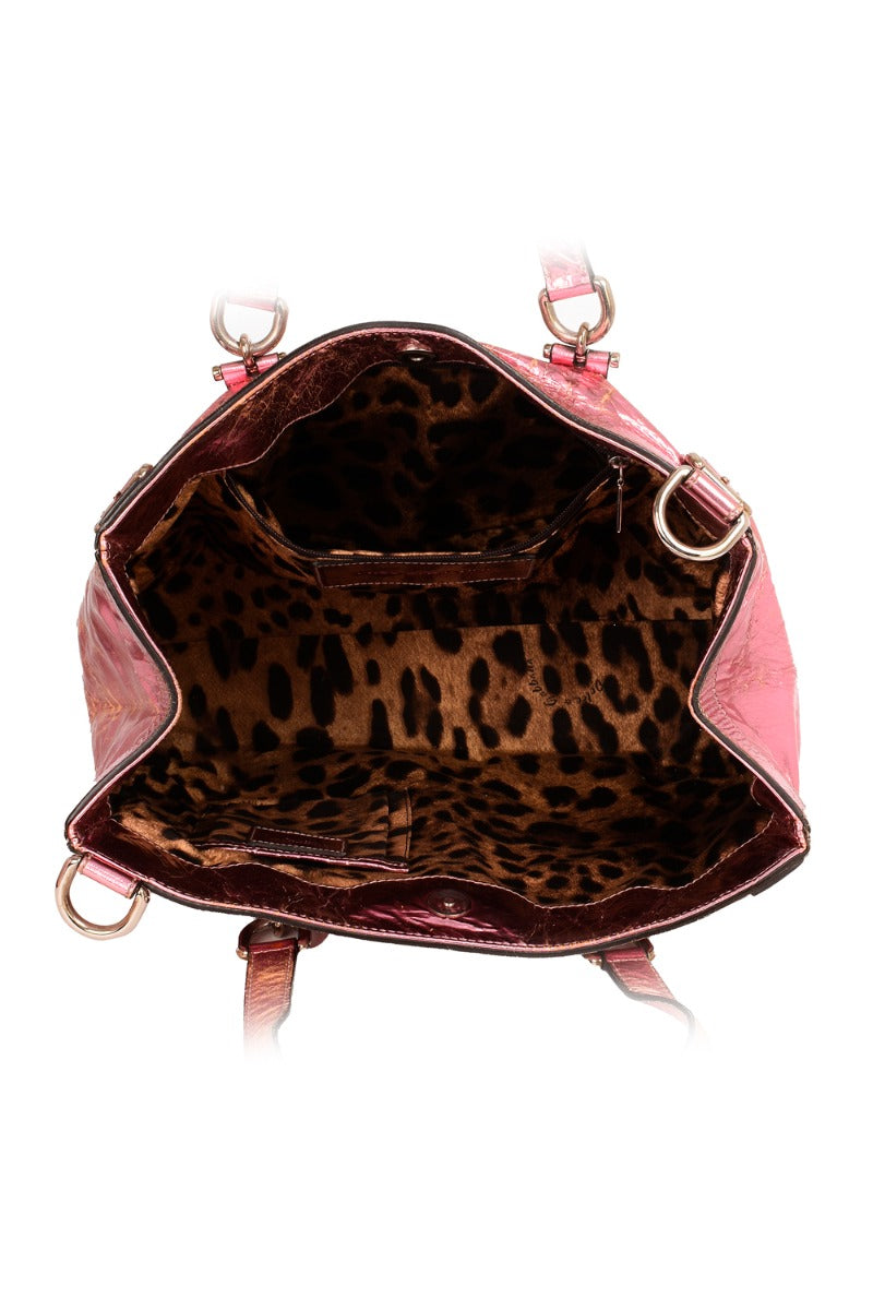 DOLCE AND GABBANNA MISS EASY WAY HANDBAG comes in this Stunning Metallic Pink color .It falls under our Good Condition Category. No visible wear and tear or fading can be seen.