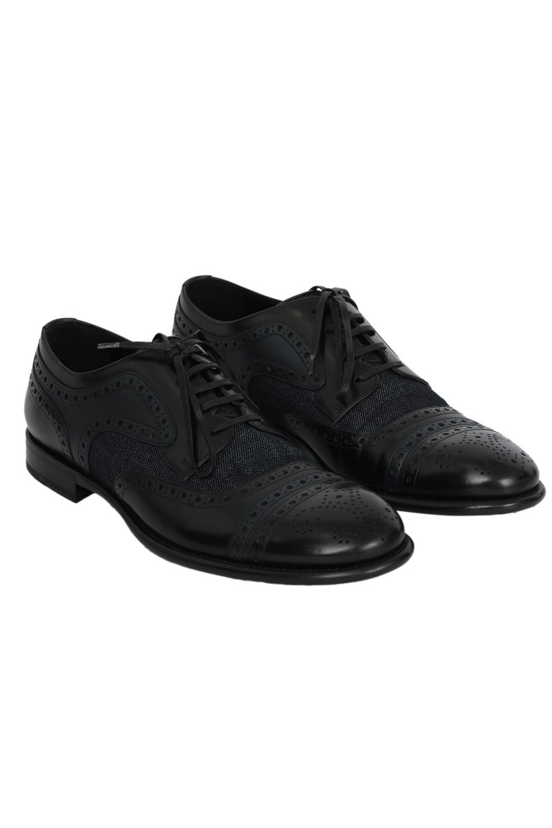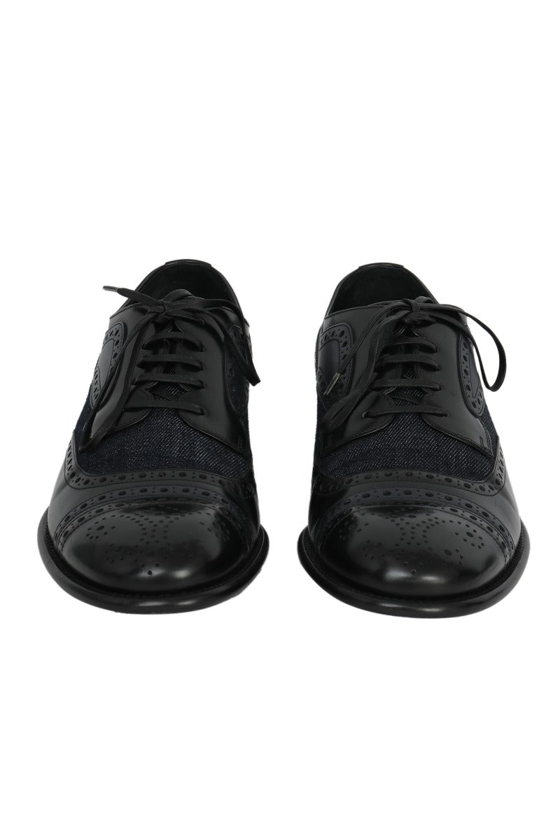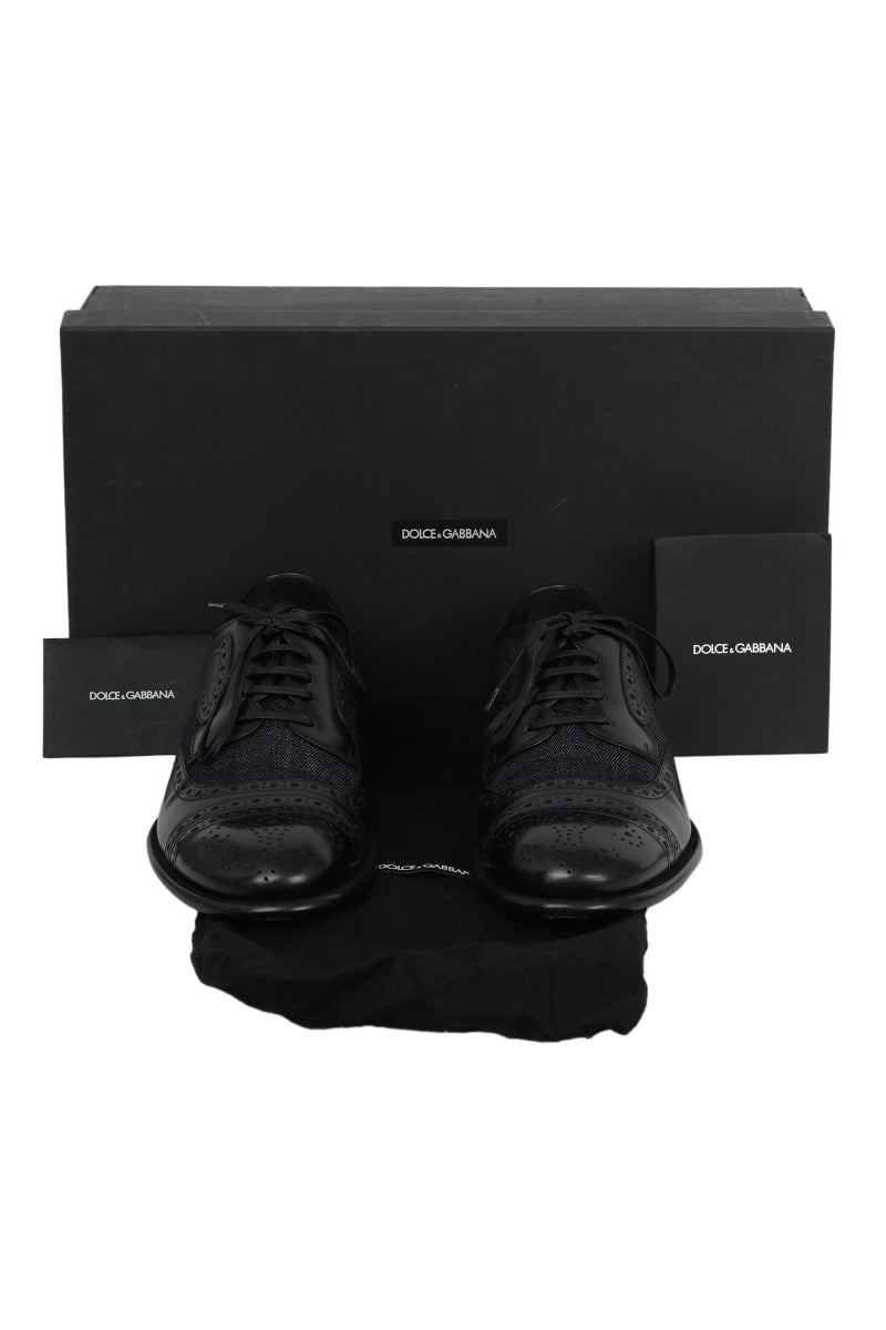 Dolce &Gabanna Lace up Oxford Denim and Black Shoes comesin this stunning Blue and Black color. It falls under our Pristine Condition Category. No visible wear and tear or fading can be seen.
