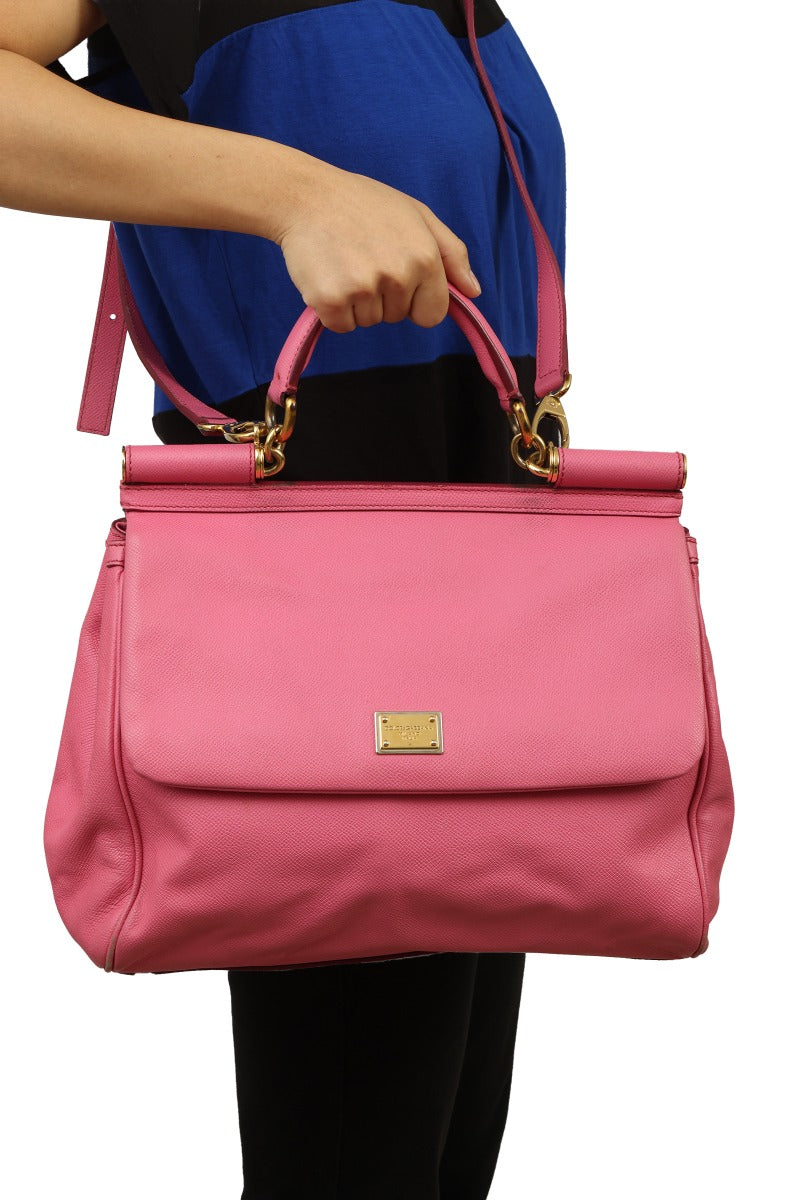 DOLCE & GABBANA LEATHER MISS SICILY TOTE BAGcomes in this Stunning Pink color .It falls under our Pristine Condition Category. No visible wear and tear or fading can be seen.