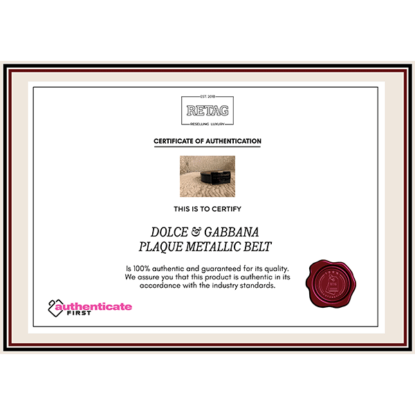 DOLCE & GABBANA PLAQUE METALLIC BELT comes in this stunning Black color. It falls under our Good condition category. No visible wear and tear or fading can be seen.