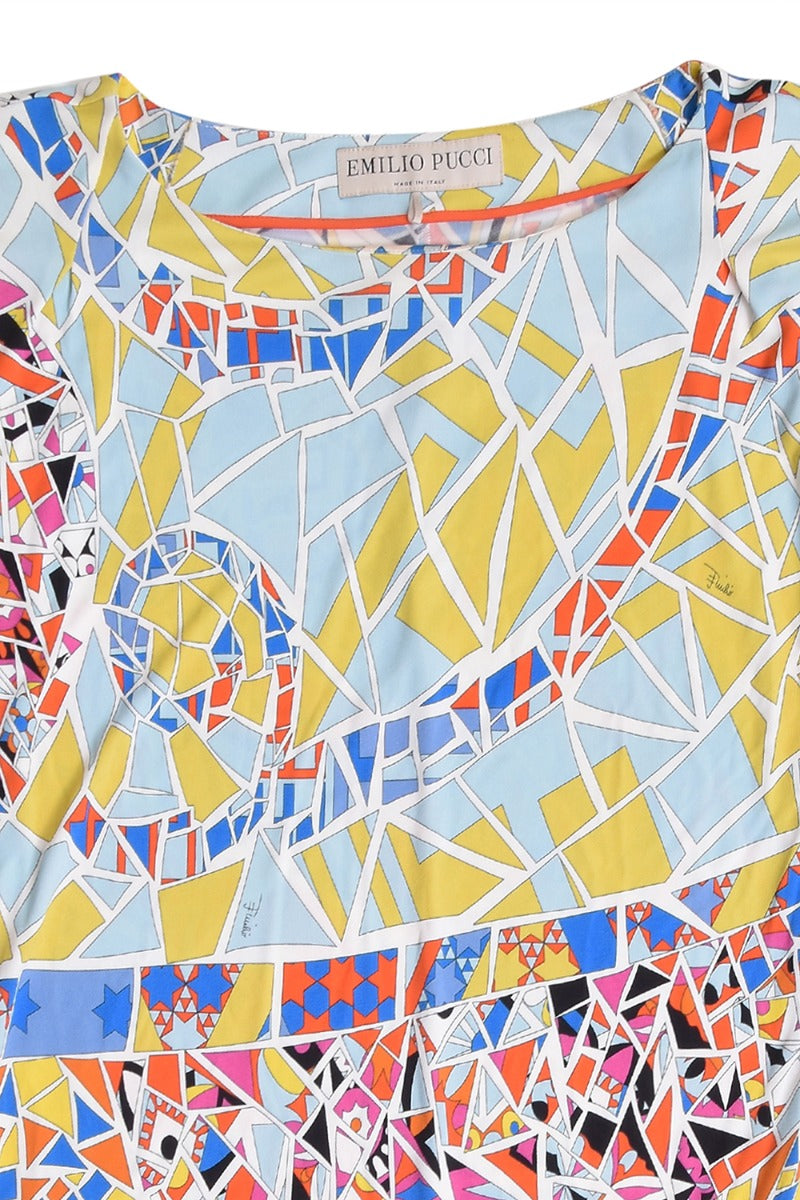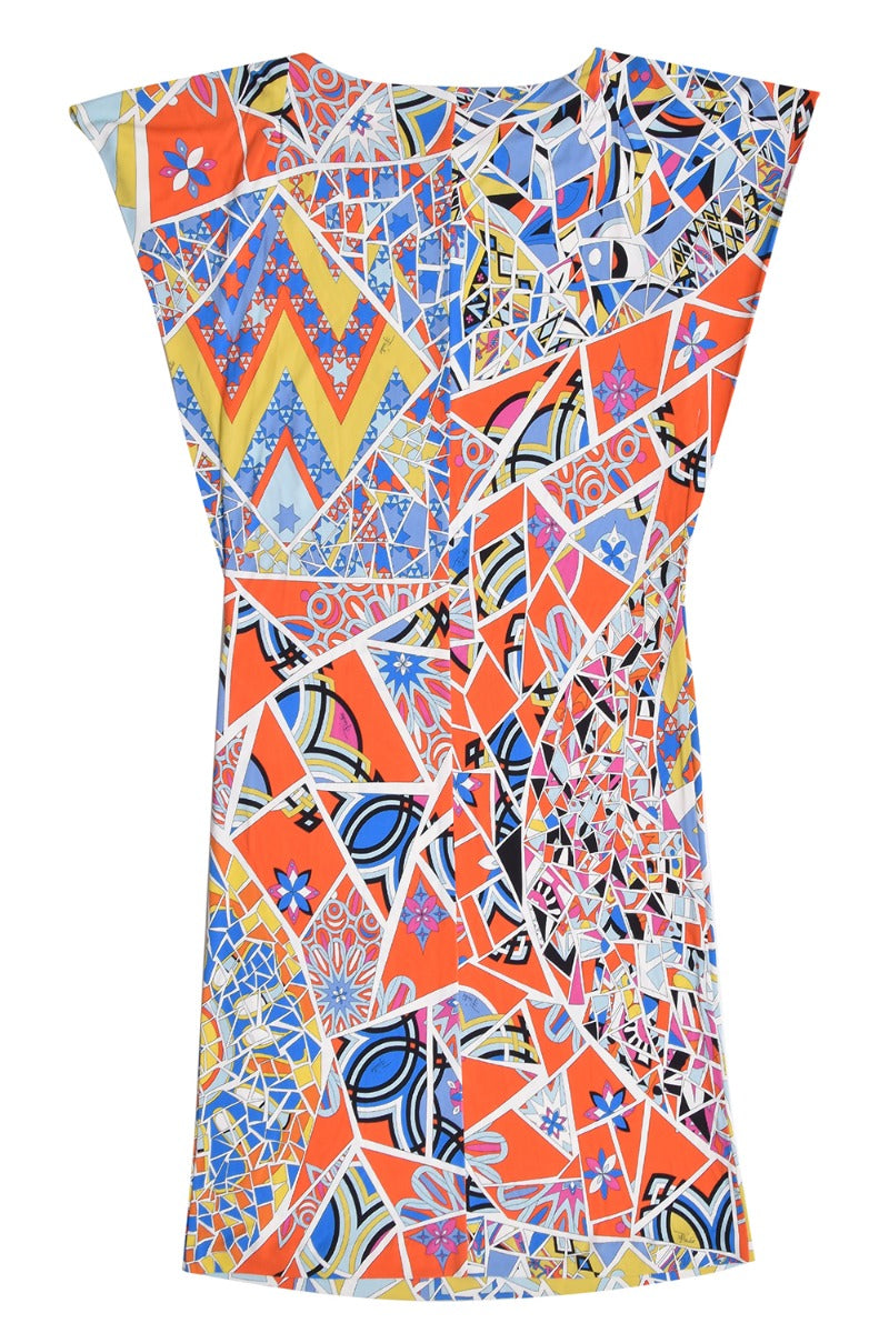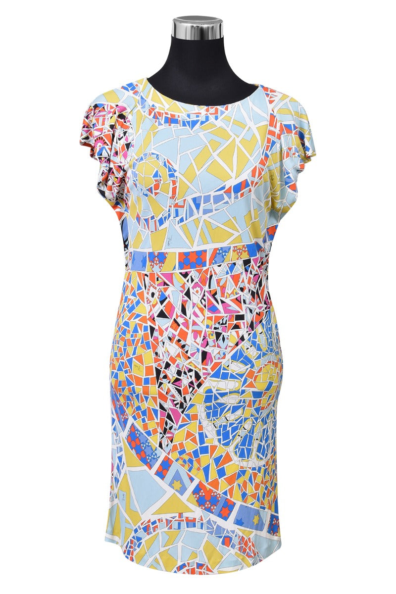 Emilio Pucci Multi- color Geometric Printed Dresscomes in this Stunning Bluecolor. It falls under our Pristine Condition Category. No visible wear and tear or fading can be seen