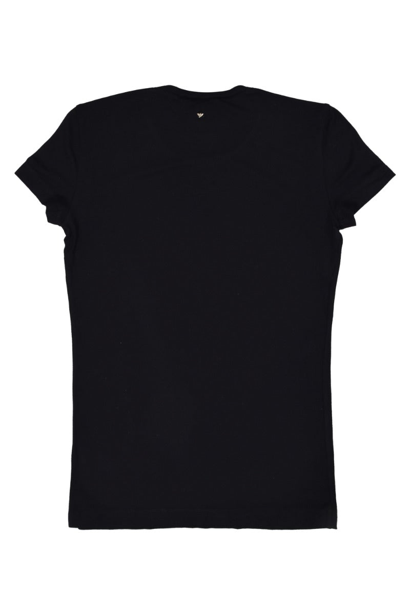 Emporio Armani Black Logo T-shirt comes in thisStunning Black color. It falls under our Good Condition Category. No visible wear and tear or fading can be seen