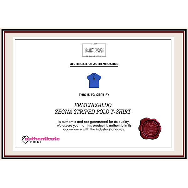 ERMENEGILDO ZEGNA STRIPED POLO T-SHIRT comes in this Stunning Navy Blue color. It falls under our New with Tags Condition Category. No visible wear and tear or fading can be seen.