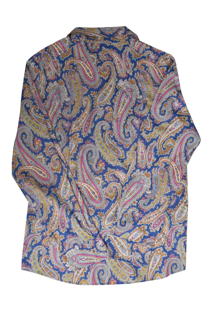 Etro Milano Printed Paisley Shirt comes in this Stunning Blue color. It falls under our Like New Condition Category. No visible wear and tear or fading can be seen