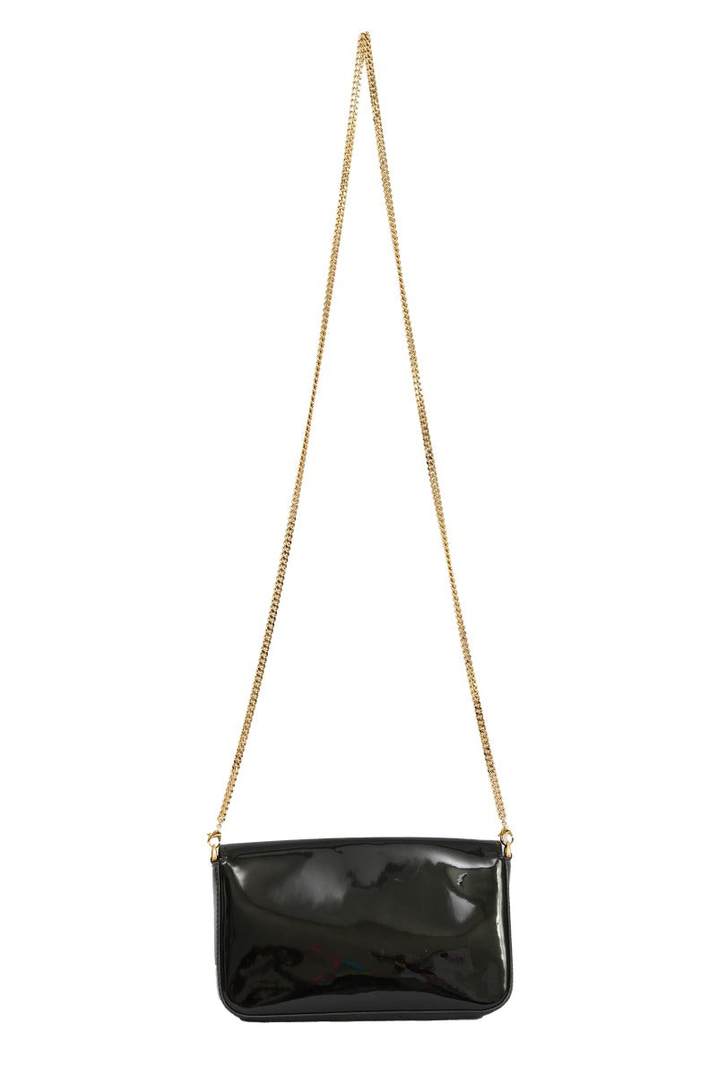 FENDI BLACK PATENT LEATHER F WALLET ON CHAIN BAG comes in this Stunning Black color .It falls under our Never Been Used Condition Category. No visible wear and tear or fading can be seen.