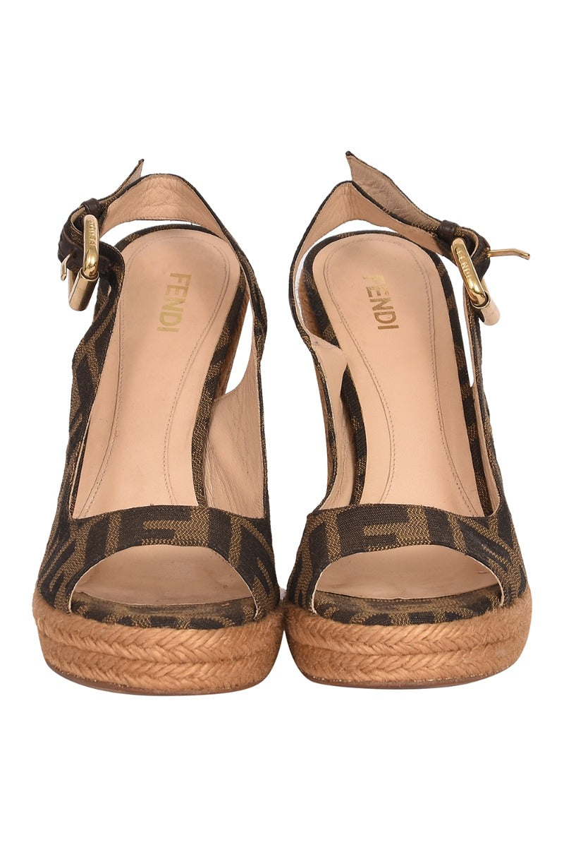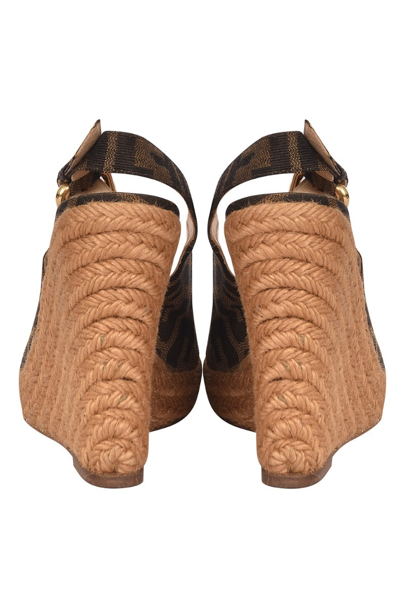 Fendi Brown Zucca Canvas Espadrille Wedge Slingbacks comes in this stunning Brown color. It falls under our Pristine Condition Category. No visible wear and tear or fading can be seen