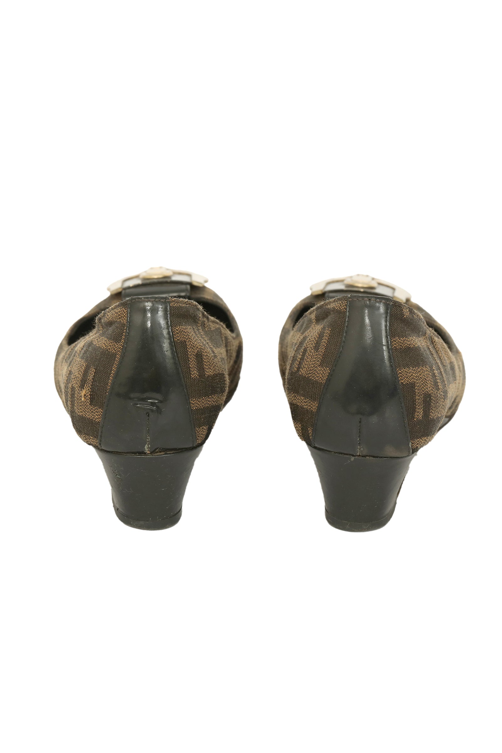 Fendi EU 37 Brown Zucca Canvas Monogram Wedges comesin this stunning Brown color. It falls under our Pristine Condition Category. No visible wear and tear or fading can be seen