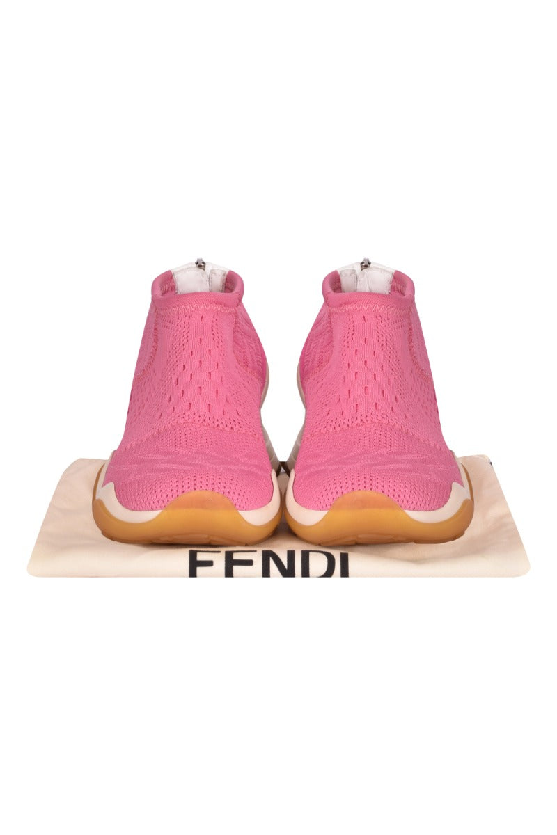 Fendi High Tech Jacquard and Leather Pink Sneakers comes in this stunning Pink color. It falls under our New Without Tags Condition Category. No visible wear and tear or fading can be seen