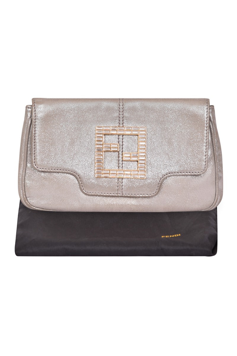 Fendi Metallic Crystal Logo Fabric Flap Clutch comes in this Stunning Silvercolor .It falls under our Pristine Condition Category. No visible wear and tear or fading can be seen.