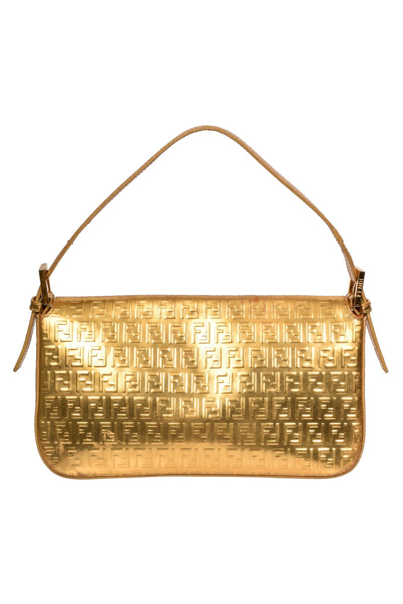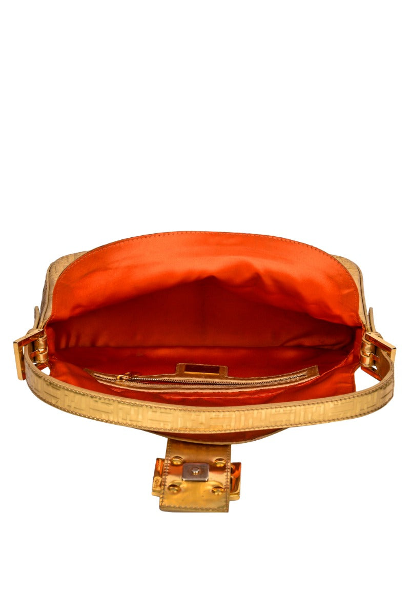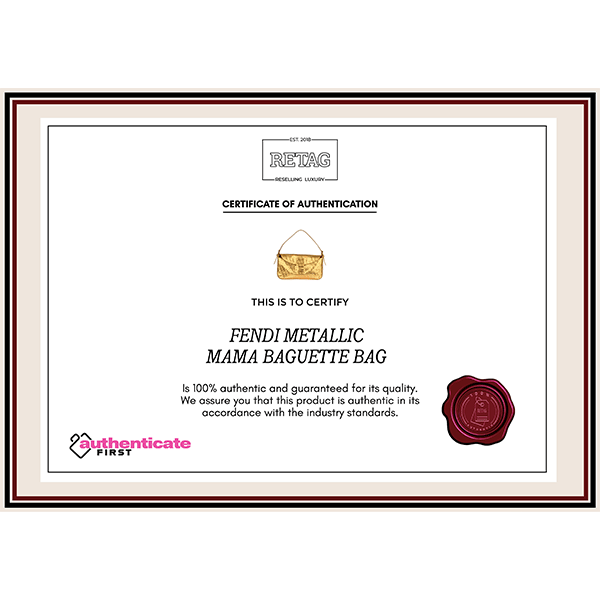 FENDI METALLIC MAMA BAGUETTE BAG comes in this Stunning Golden color .It falls under our Pristine Condition Category. No visible wear and tear or fading can be seen.