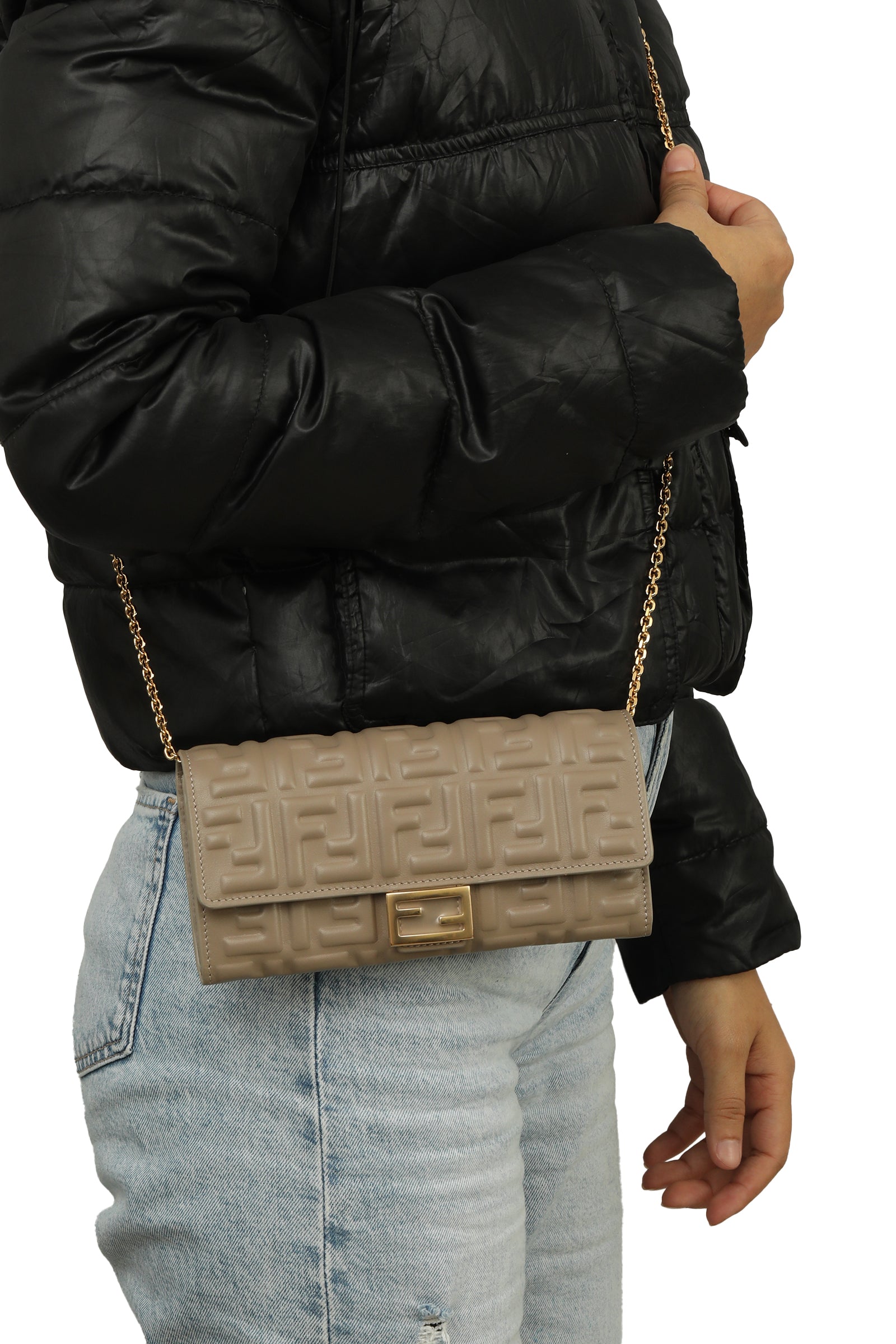 Fendi Sand Brown Monogram Leather Wallet on Chain comes in this Stunning Sand color .It falls under our NEW WITHOUT TAG Condition Category. No visible wear and tear or fading can be seen.