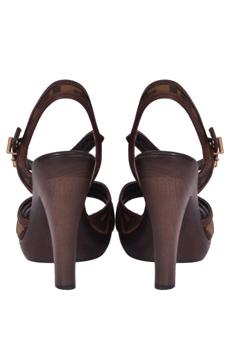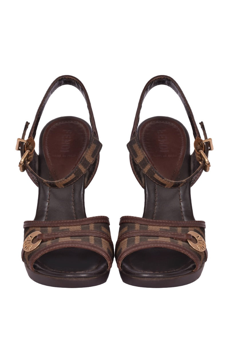 Fendi Tobacco Zucca Canvas Peep Toe Slingback Sandalscomes in this stunning Brown color. It falls under our Like NewCondition Category. No visible wear and tear or fading can be seen