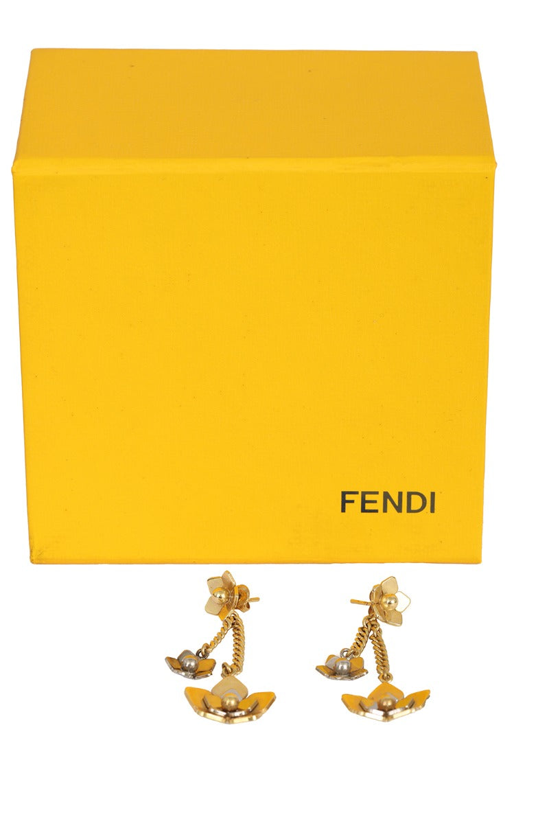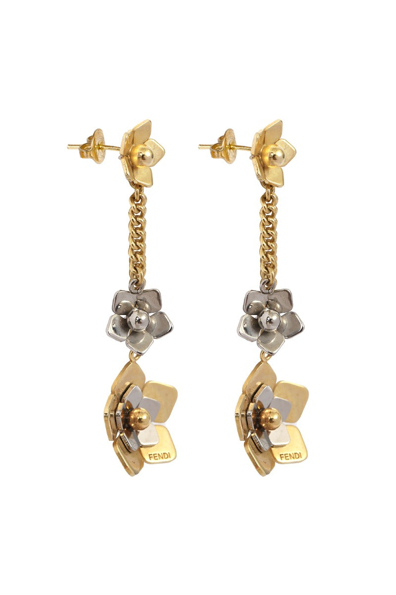 Fendi Two Tone Flower Dangle Earrings