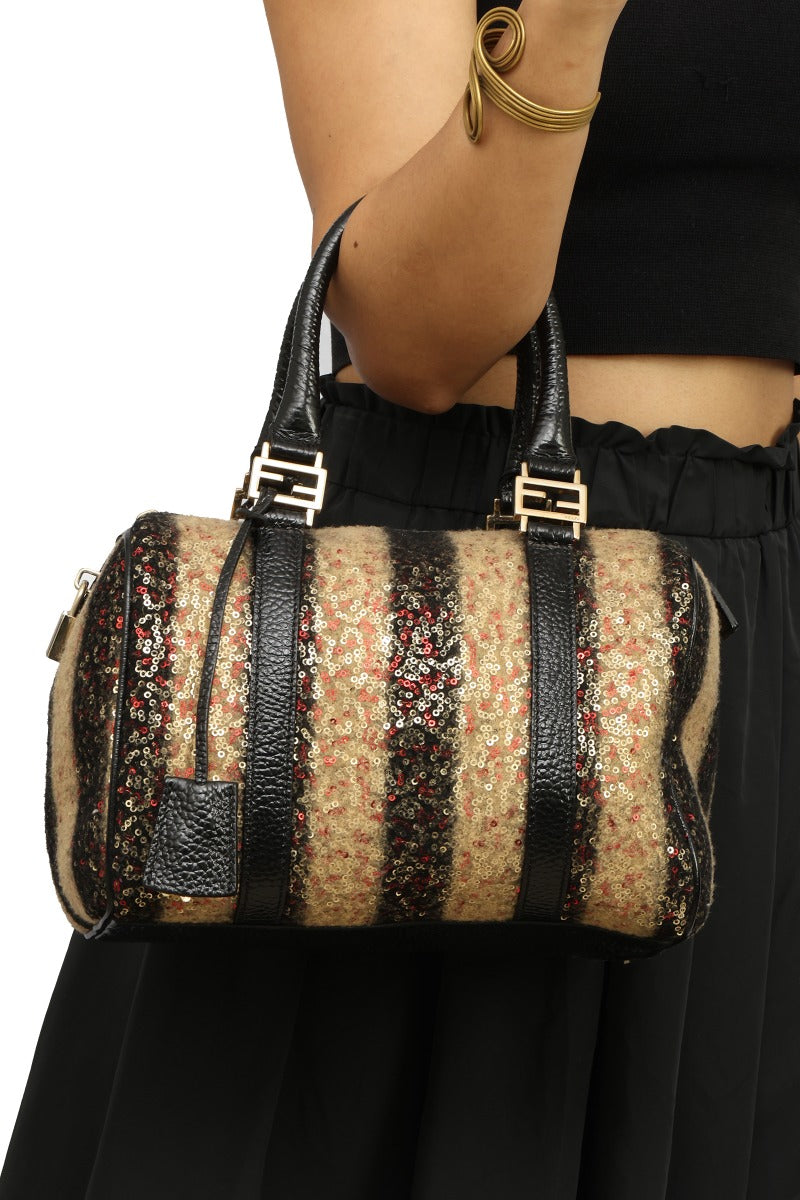 FENDI WOOL AND SEQUIN SMALL FOREVER BAULETTO BOSTON BAG comes in this Stunning Beige color .It falls under our Pristine Condition Category. No visible wear and tear or fading can be seen.