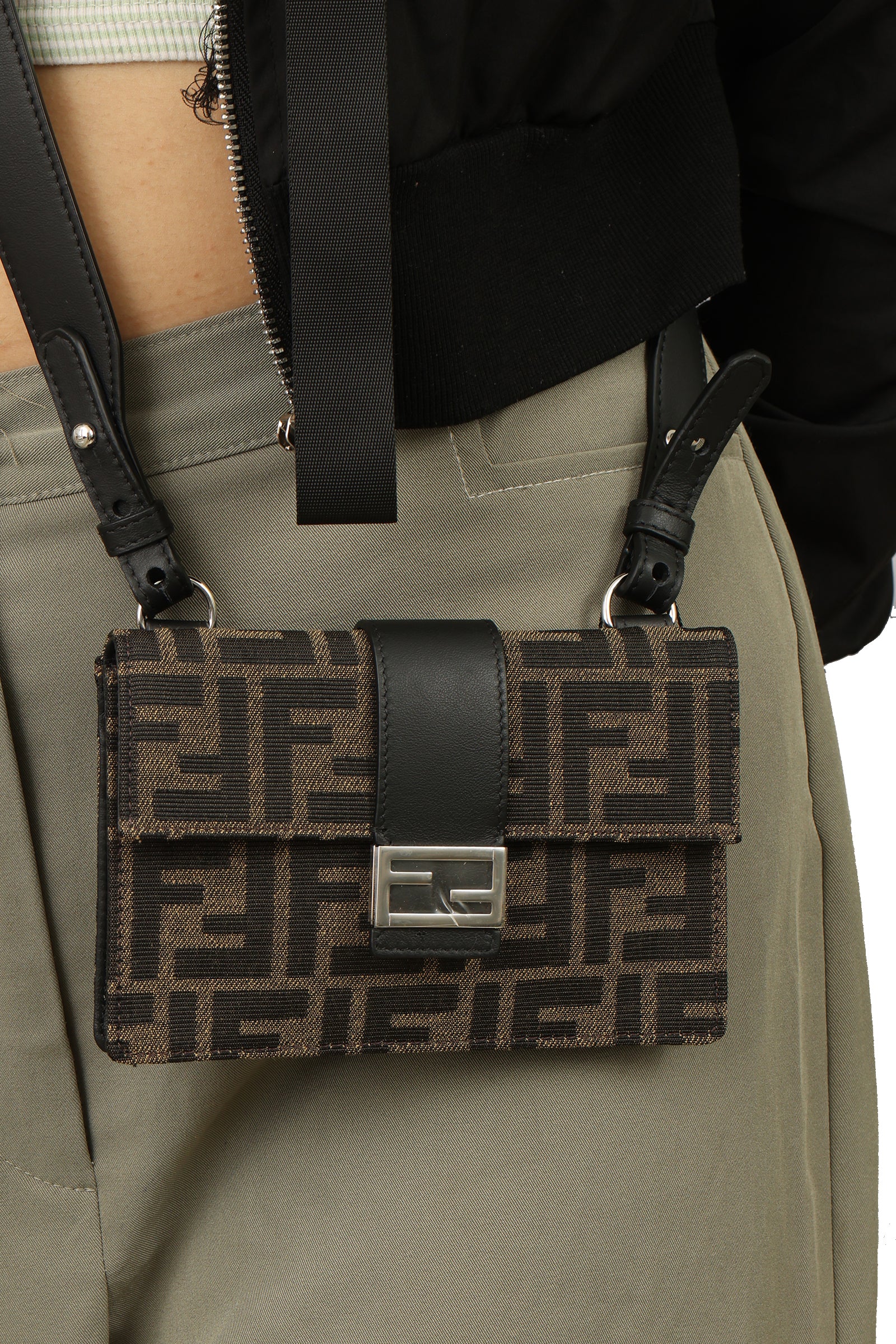 The Fendi Zucca Baguette Slim Shoulder Bag comes in a stunning brown color.