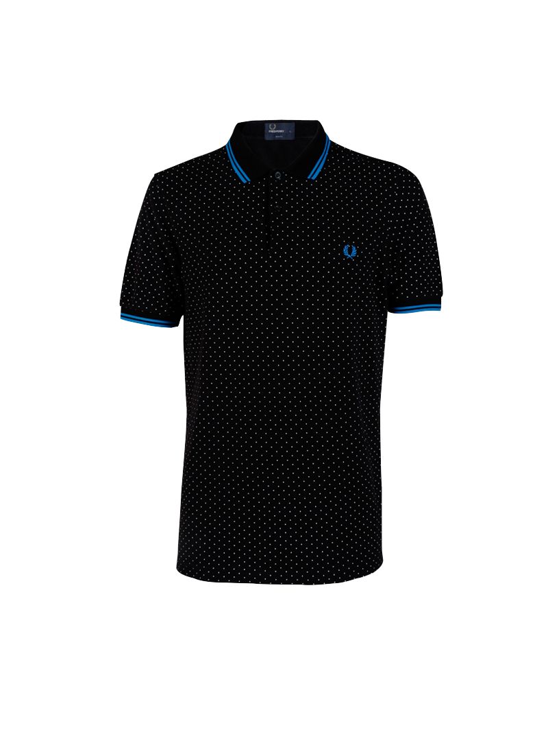 Give your wardrobe a makeover with this casual t-shirt from the house of Fred Perry. The cotton design in blues adorned with white polka dots and a classic logo on the chest.Style with denim and sneakers.