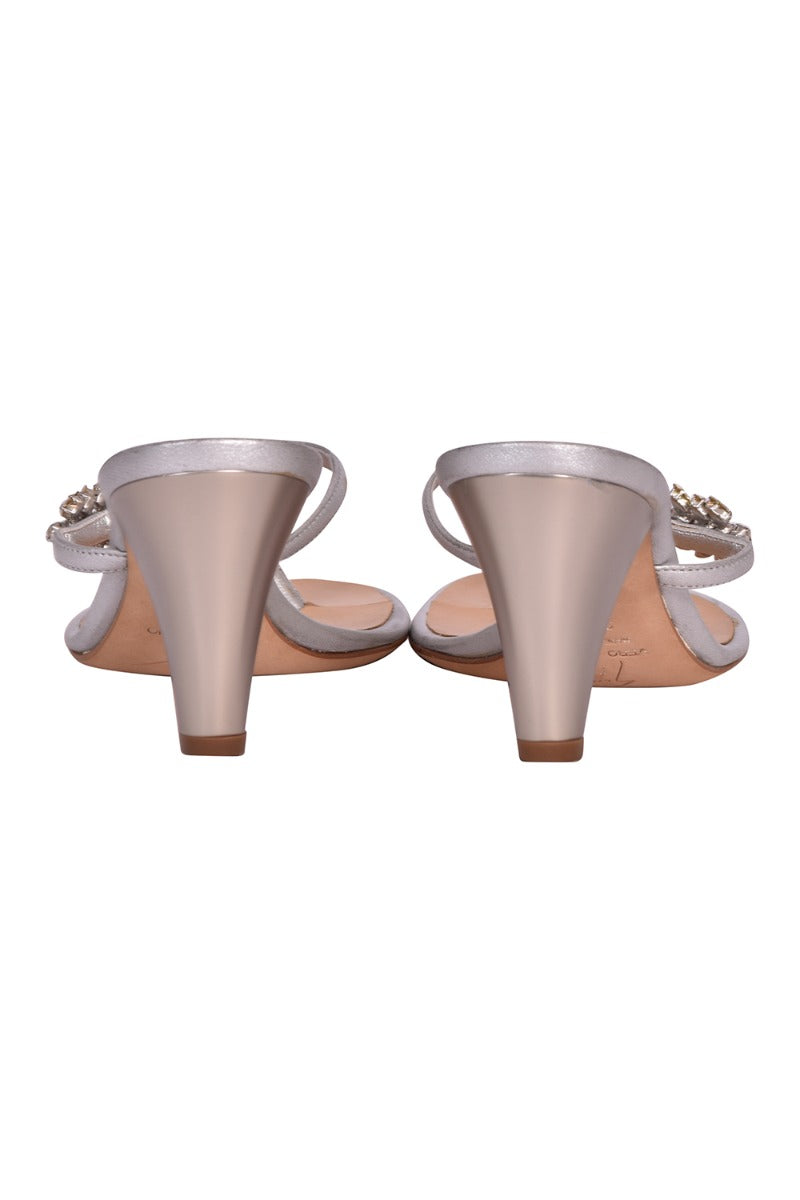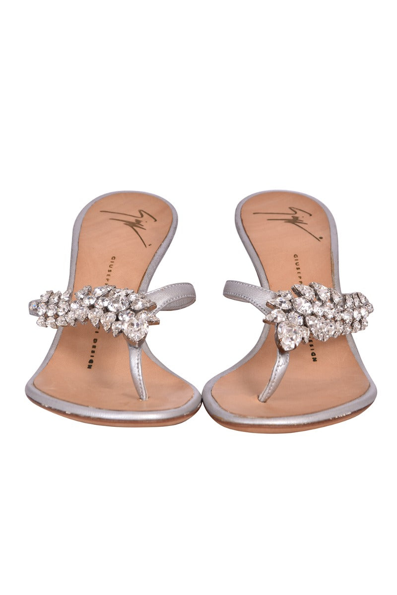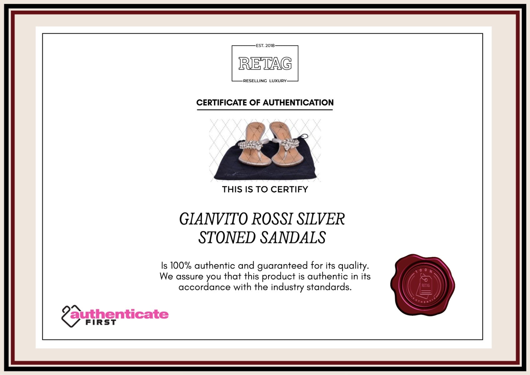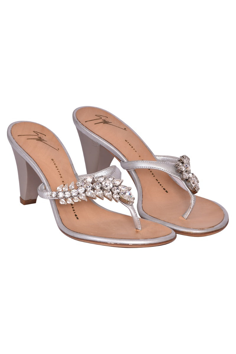 Guiseppe Zanotti Silver Stoned Sandals comes in this stunning Silver color. It falls under our Never Been Used Condition Category. No visible wear and tear or fading can be seen.