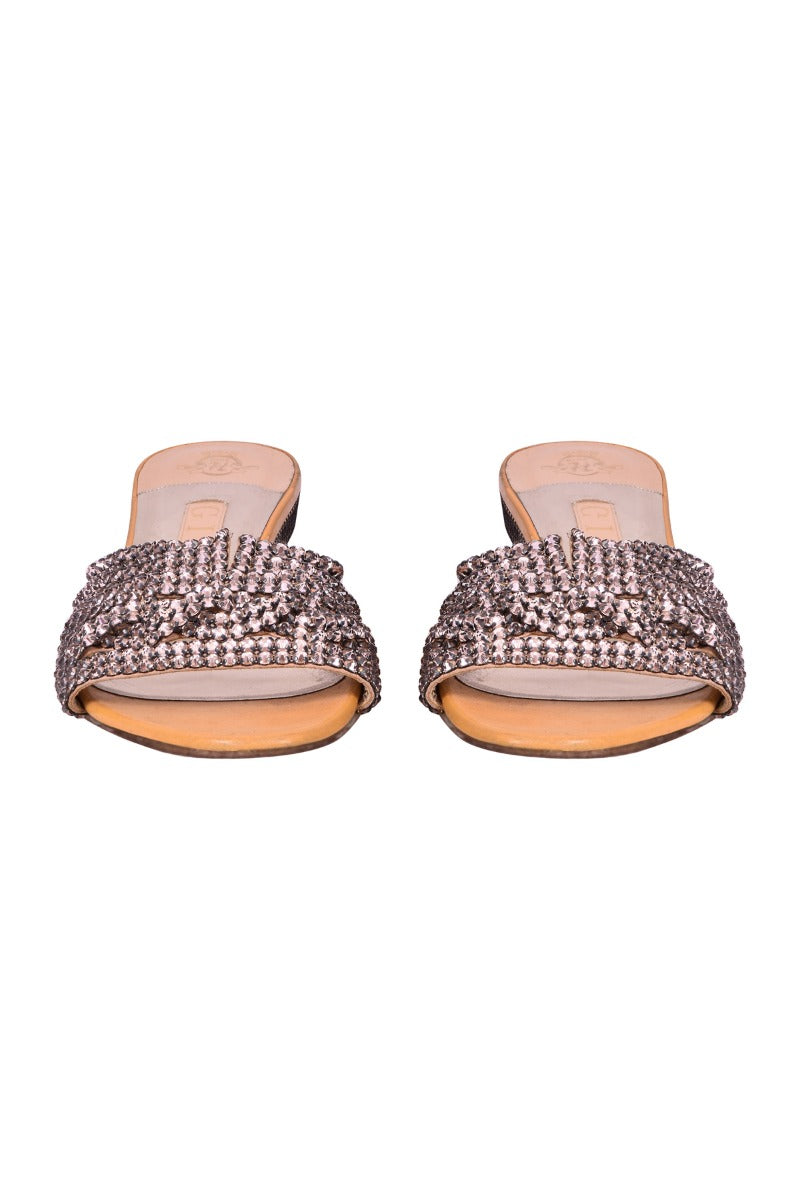Gina Swarovski Golden Crystal Sandals comes in this stunning Golden color. It falls under our Good Condition Category. No visible wear and tear or fading can be seen.