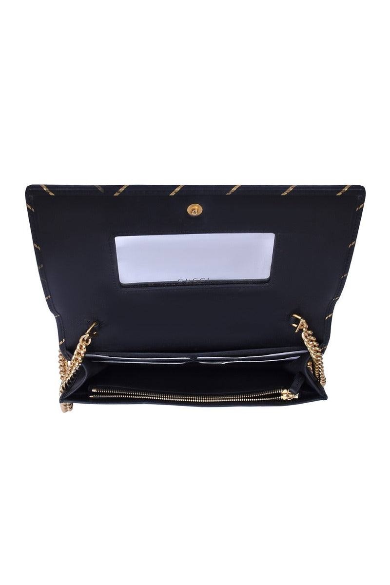 Gucci Black & Gold Calfskin Diagonal GG Mini Chain Wallet comes in this Stunning Black color .It falls under our Like New Condition Category. No visible wear and tear or fading can be seen