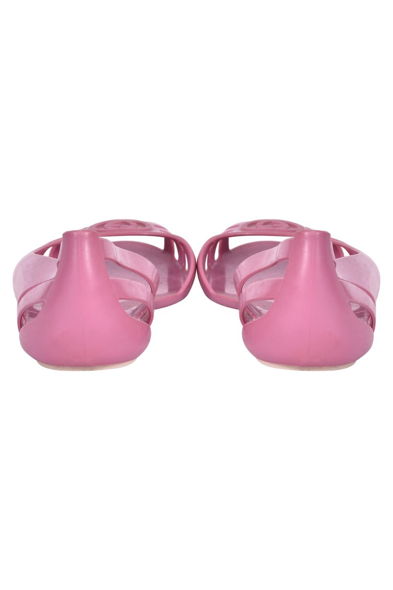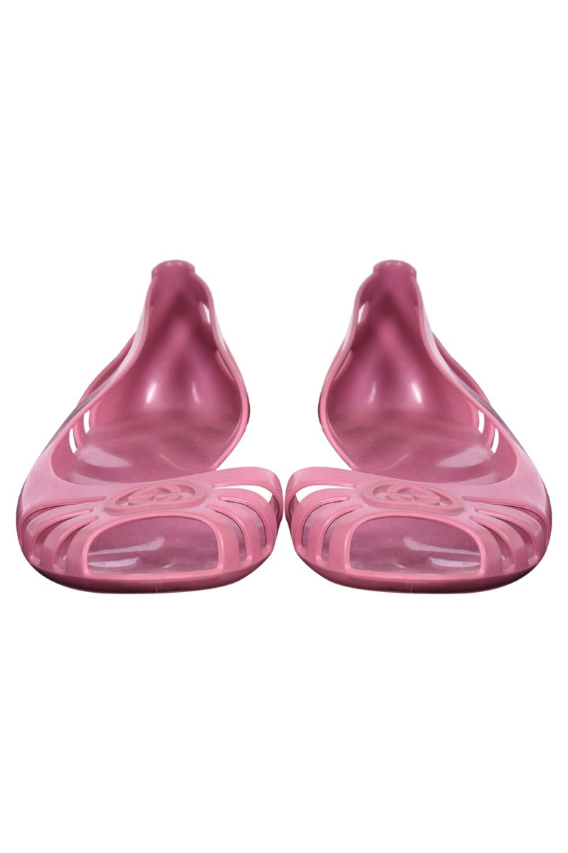 Gucci Blush Pink Jelly Interlocking GG Marola Jelly Ballet Flatscomes in this stunning Pink color. It falls under our Pristine Condition Category. No visible wear and tear or fading can be seen.