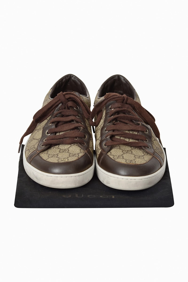 Gucci Brooklyn GG Supreme Sneakers comes in this stunning Brown color. It falls under our Good Condition Category. No visible wear and tear or fading can be seen.
