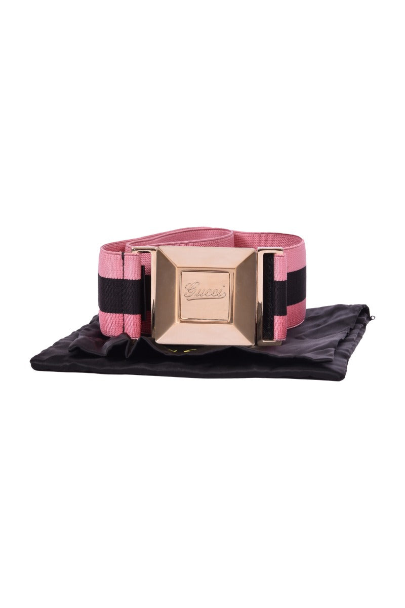 Gucci Elastic Pink Striped Belt Comes in this stunning Pinkcolor. It falls under our Good Condition Category. No visible wear and tear or fading can be seen