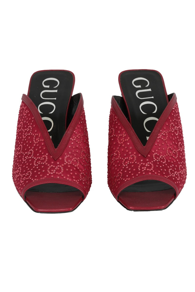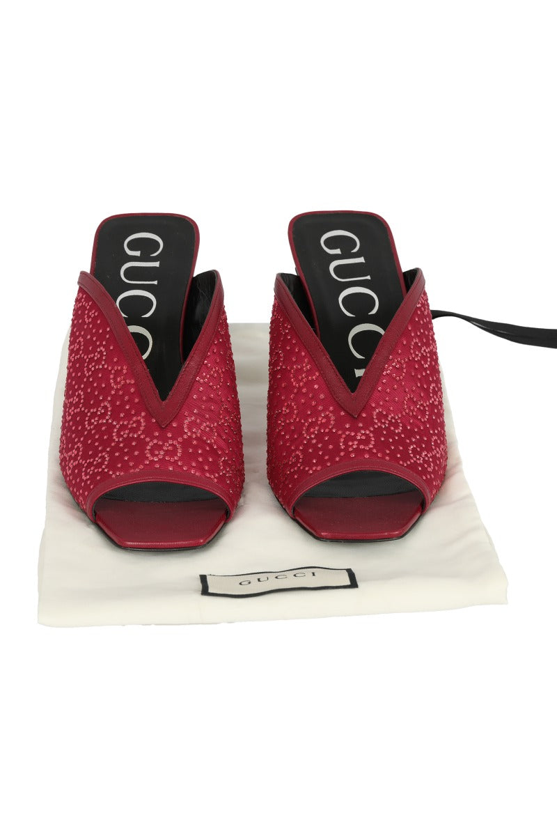GUCCI EU 39 CRYSTAL EMBELLISHED CHERRY FABRIC SANDAL HEELS comes in this stunning Burgundy color. It falls under our Never Been Used Condition Category. No visible wear and tear or fading can be seen.