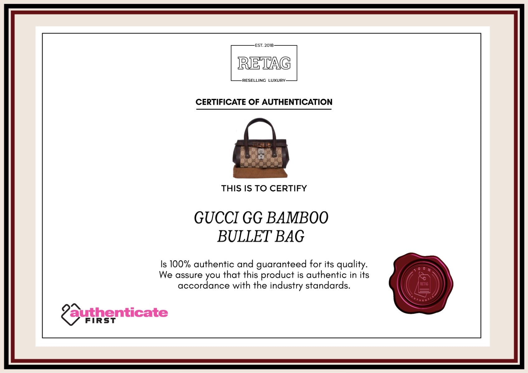 Gucci GG Bamboo Bullet Bag comes in this Stunning Browncolor .It falls under our Pristine Condition Category. No visible wear and tear or fading can be seen.