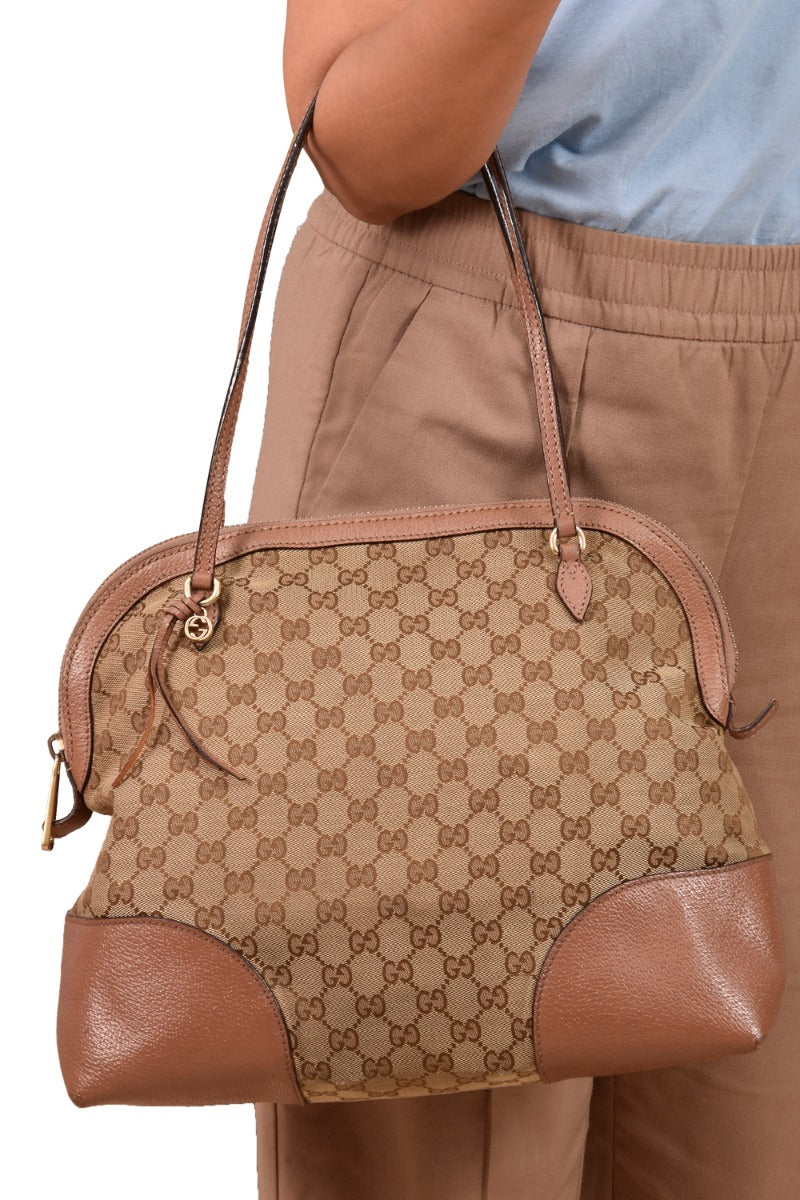 Gucci GG Bree Dome Satchel Bag comes in this Stunning Browncolor .It falls under our Pristine Condition Category. No visible wear and tear or fading can be seen.