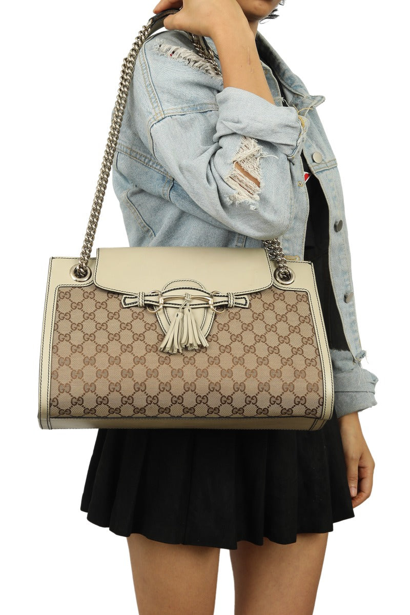 Gucci GG Guccissima Medium Emily Bag comes in this Stunning Beige color .It falls under our Pristine Condition Category. No visible wear and tear or fading can be seen