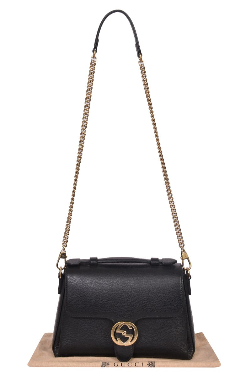 Gucci GG Interlocking Leather Chain Crossbody Bagcomes in this Stunning Black color .It falls under our Never Been Used Condition Category. No visible wear and tear or fading can be seen
