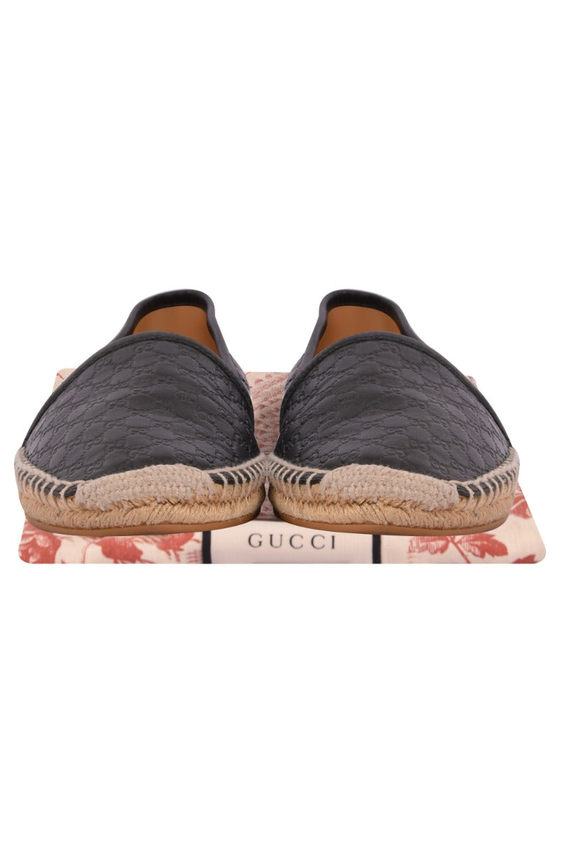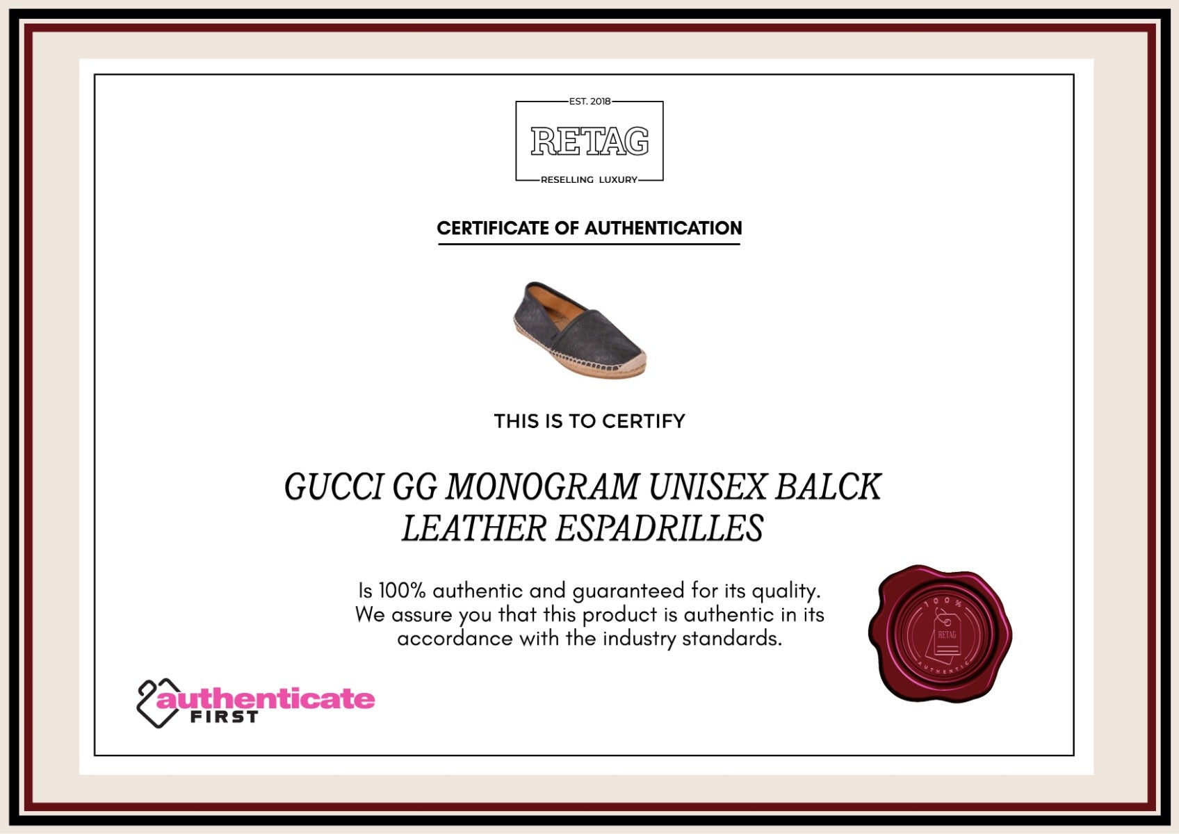 Gucci GG Monogram Unisex Balck Leather Espadrilles comes in this stunning Black color. It falls under our Pristine Condition Category. No visible wear and tear or fading can be seen.